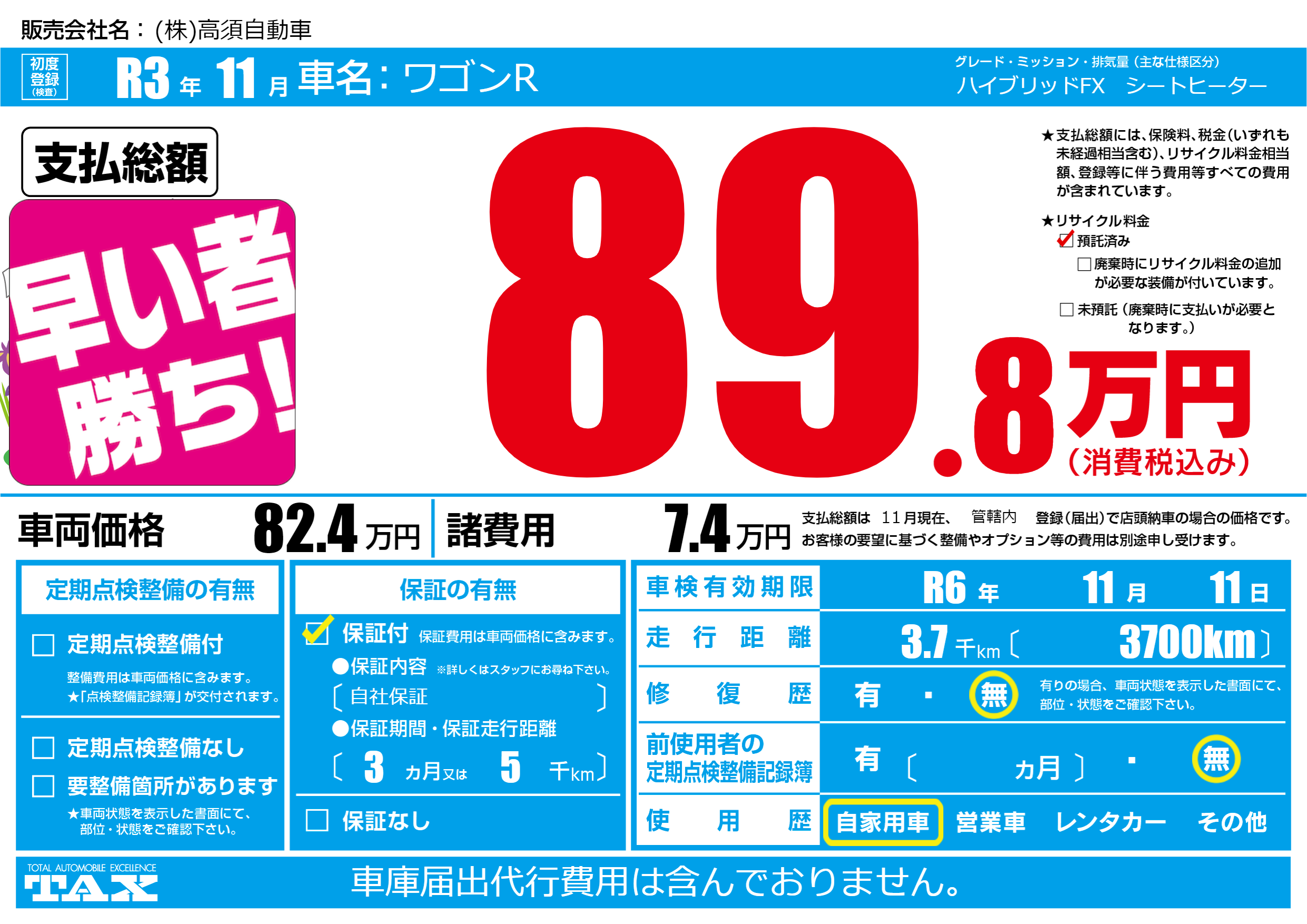 なし | 車検制限 | R6年11月11月 |