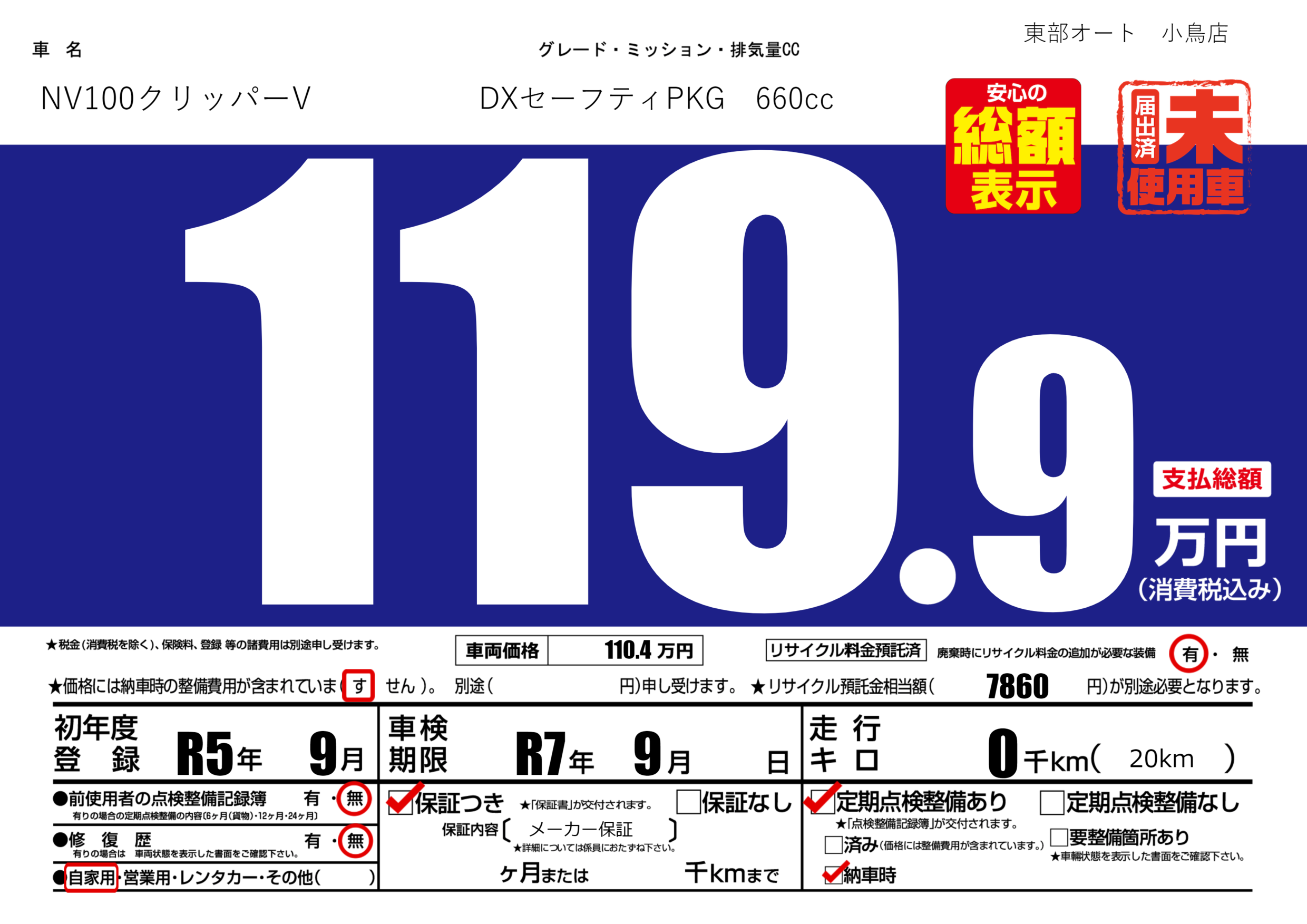 | 定期点検整備 | 定期点検整備あり 納車時あり | ||