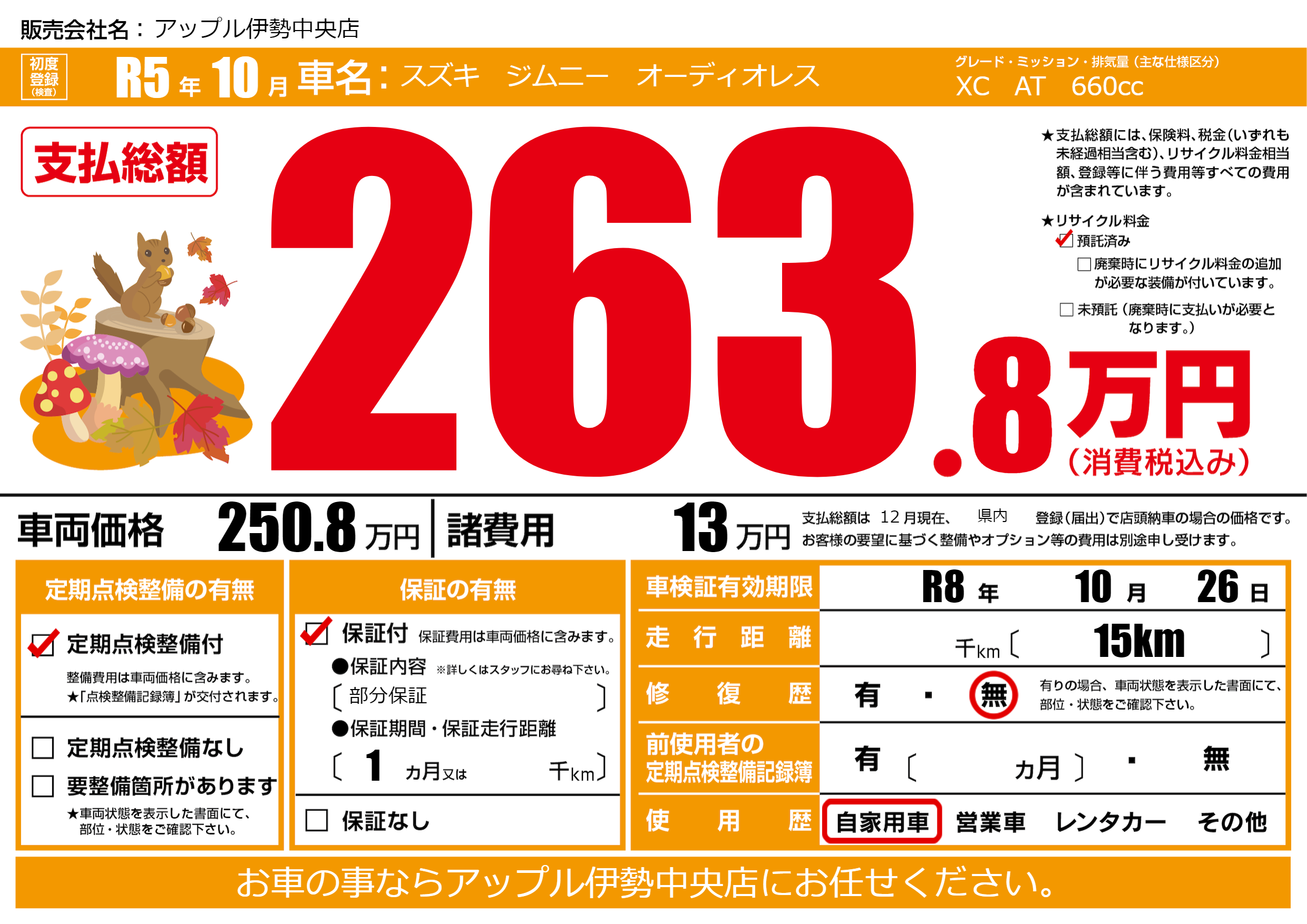 | 走行キロ | - | 初年度登録 | R5年10月 |