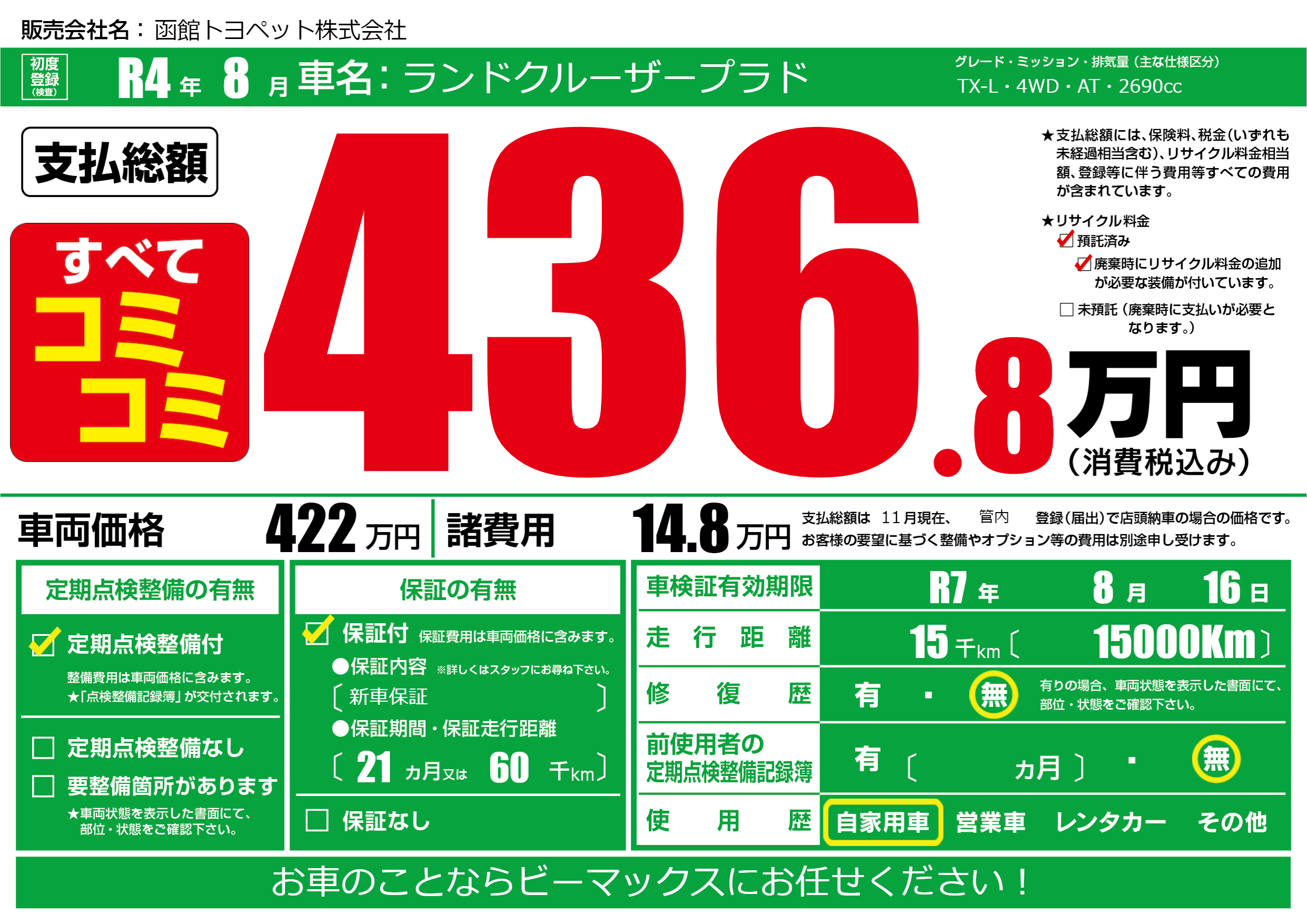| 初年度登録 | R4年8月 | ||