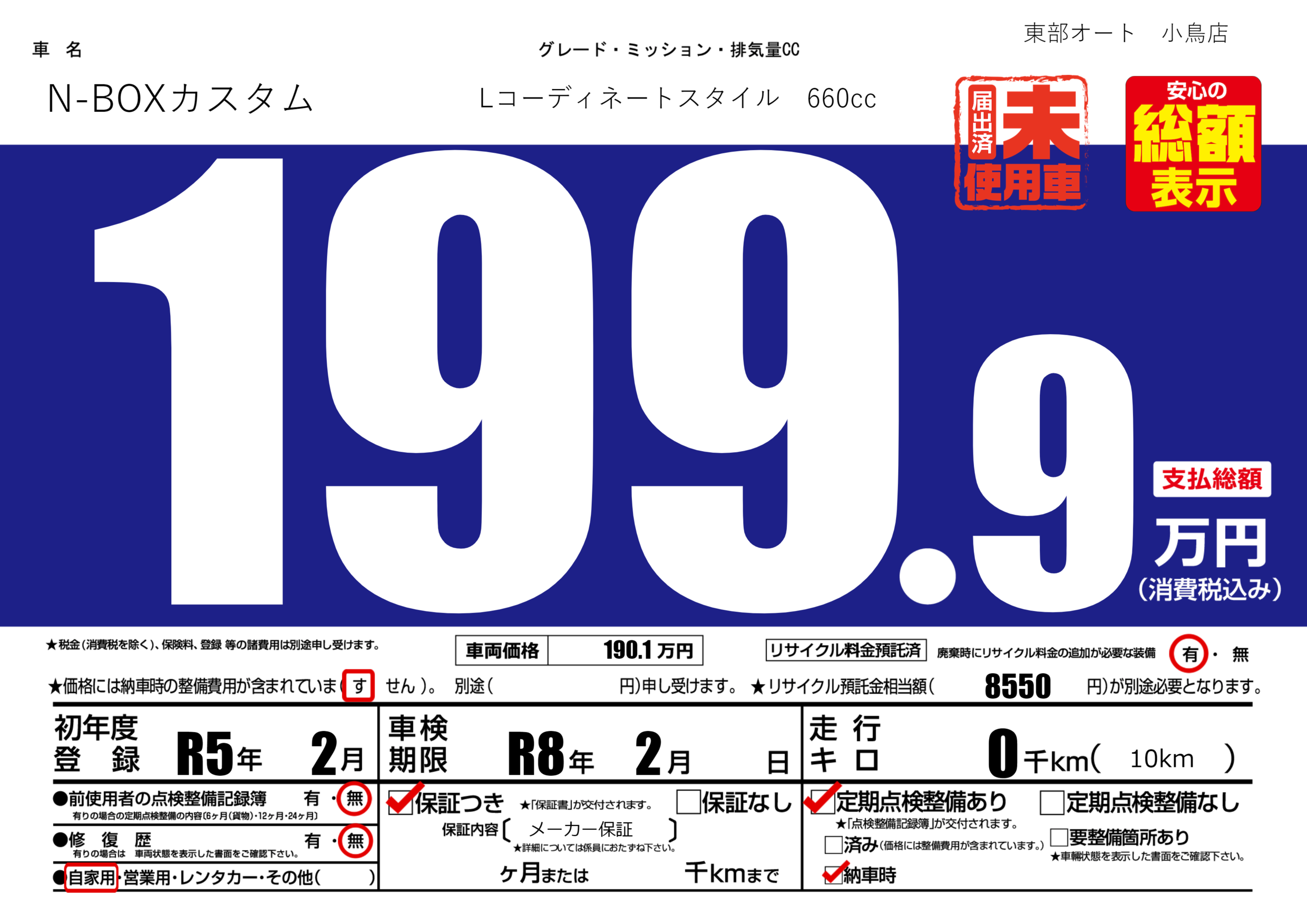 | 定期点検整備 | 定期点検整備あり 納車時あり | ||