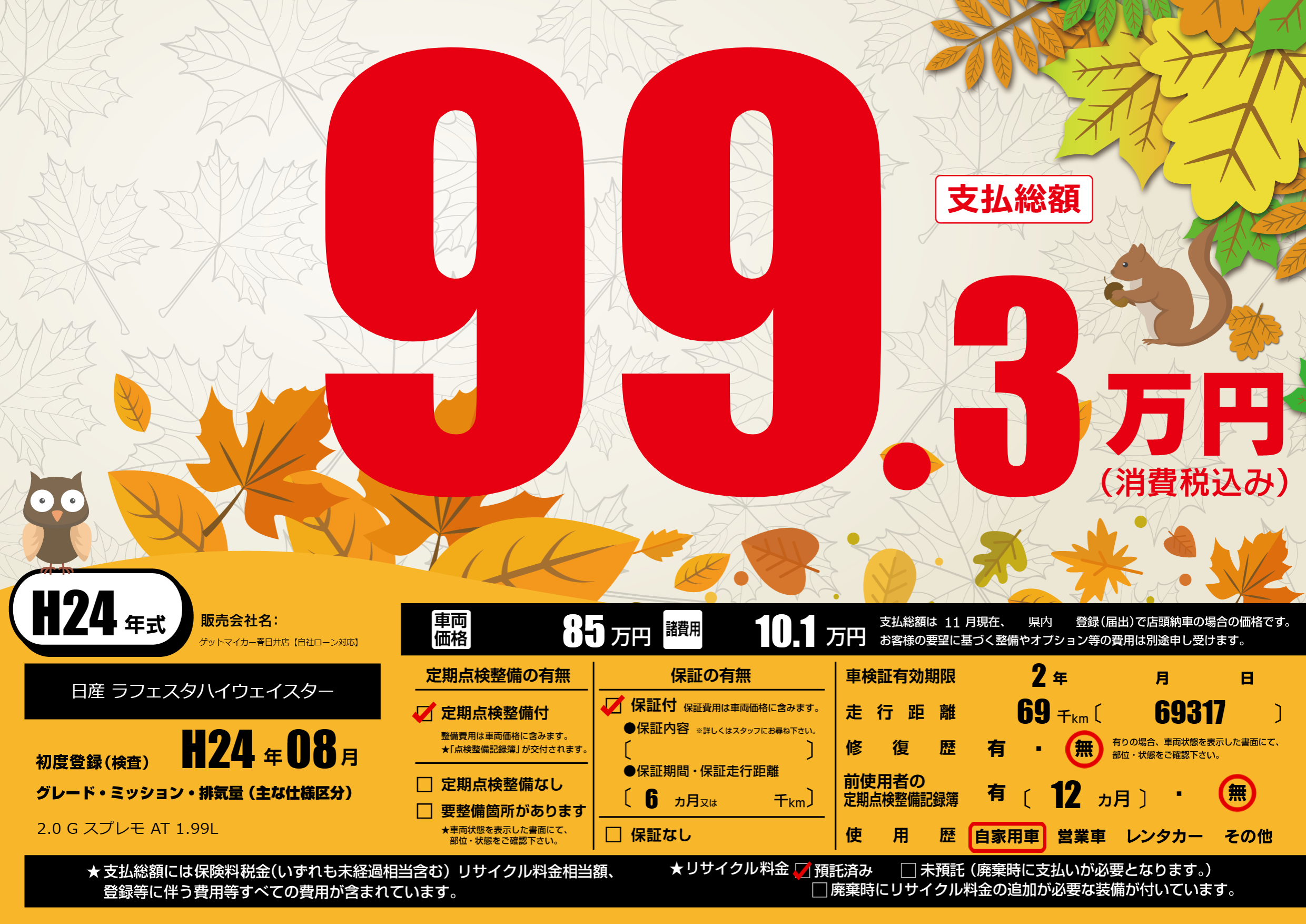 | 定期点検整備 | 定期点検整備あり | ||