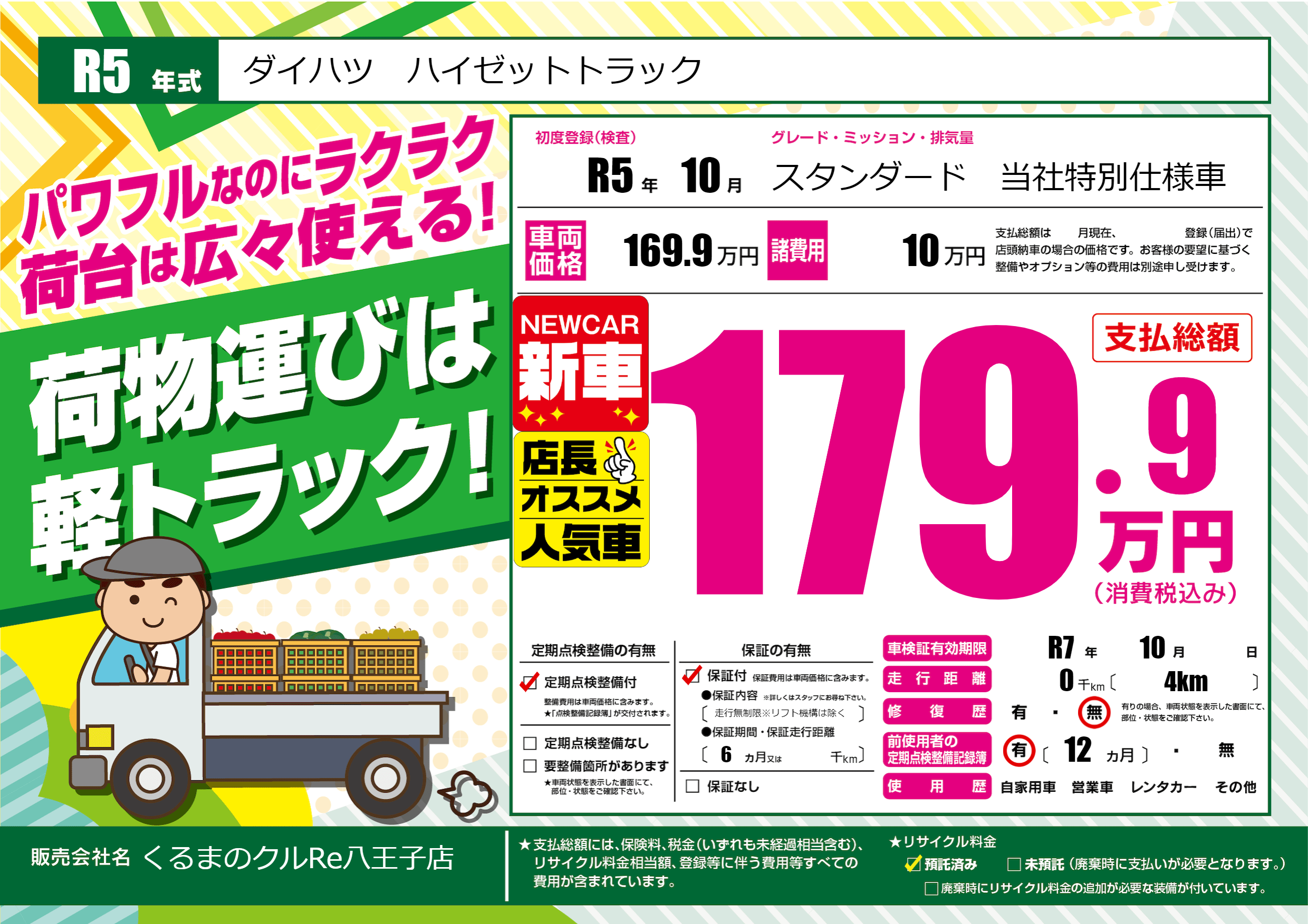 | 走行キロ | - | 初年度登録 | R5年10月 |