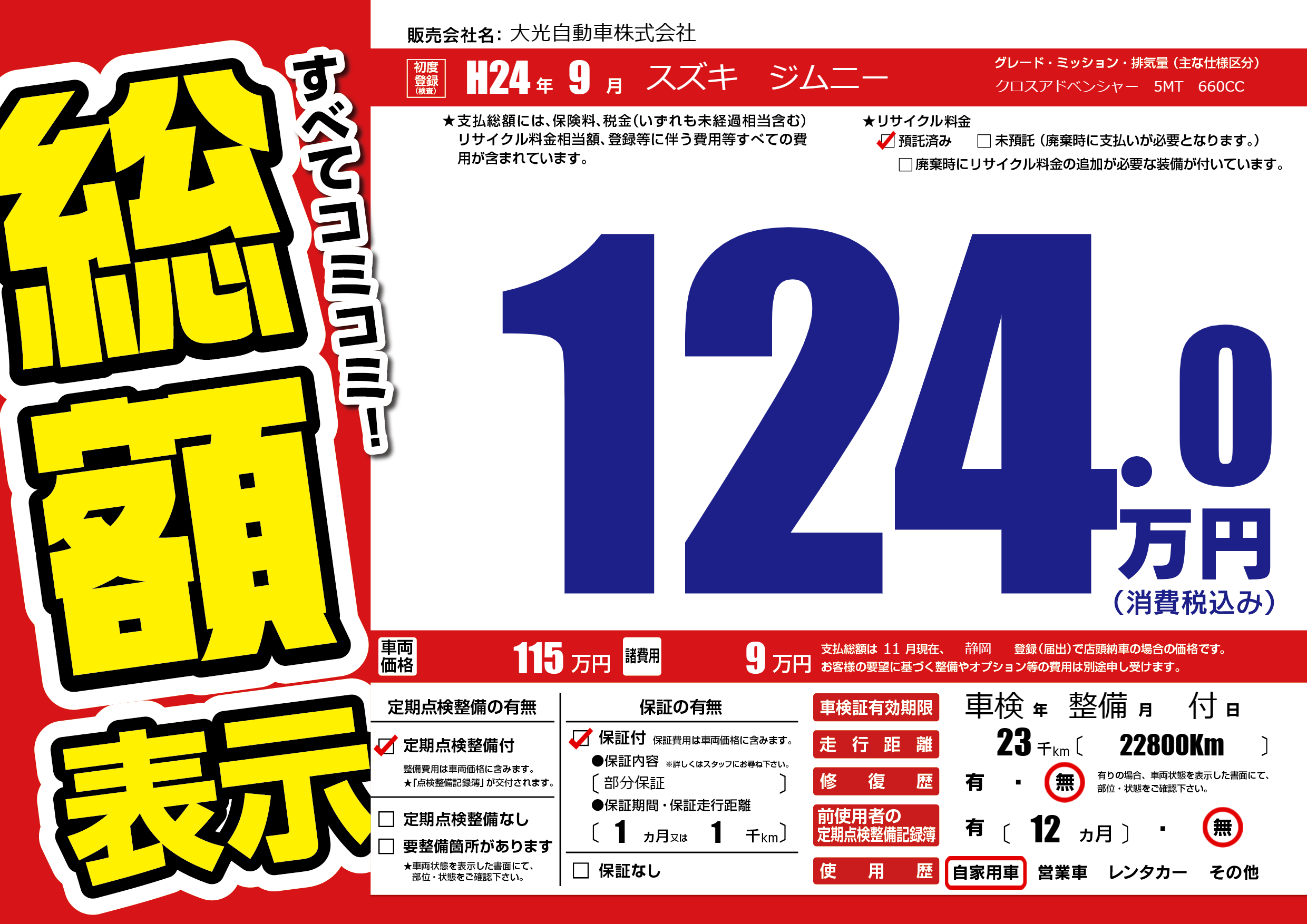 | 車名 | スズキ ジムニー | グレード ミッション 排気量 |