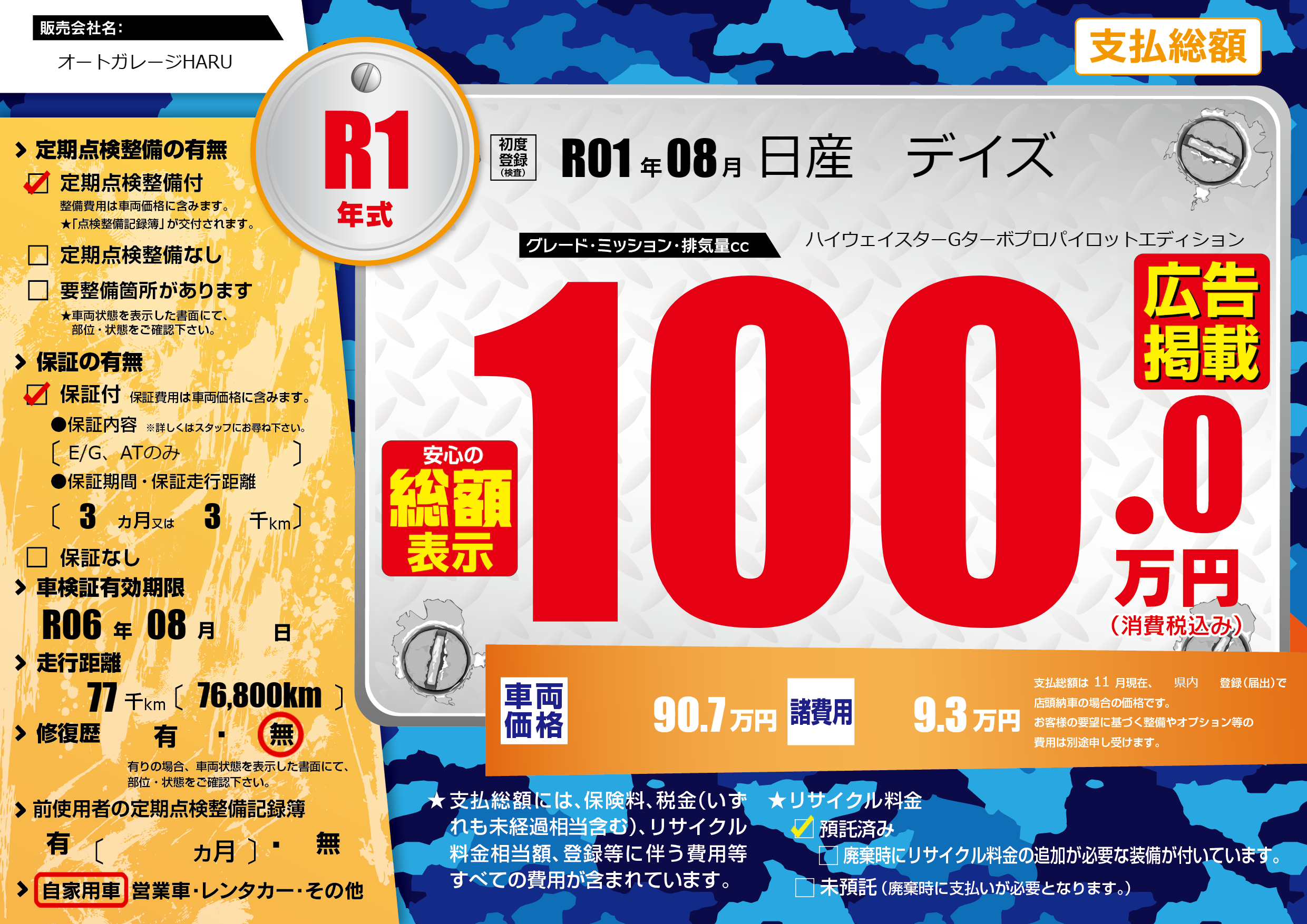 | 車検制限 | R06年 08月 - 日 | ||
