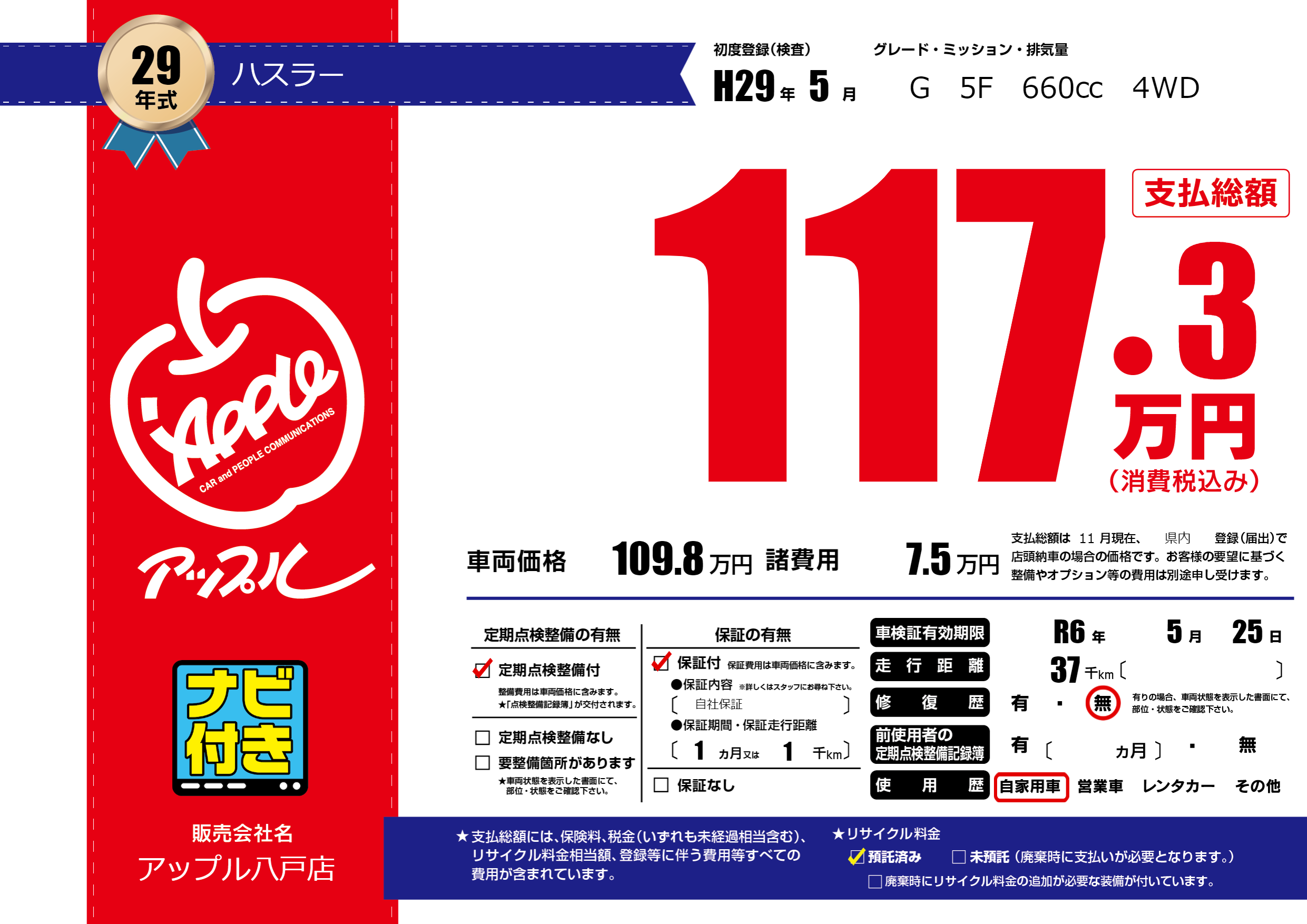 | 車名 | ハスラー | グレード ミッション 排気量 |