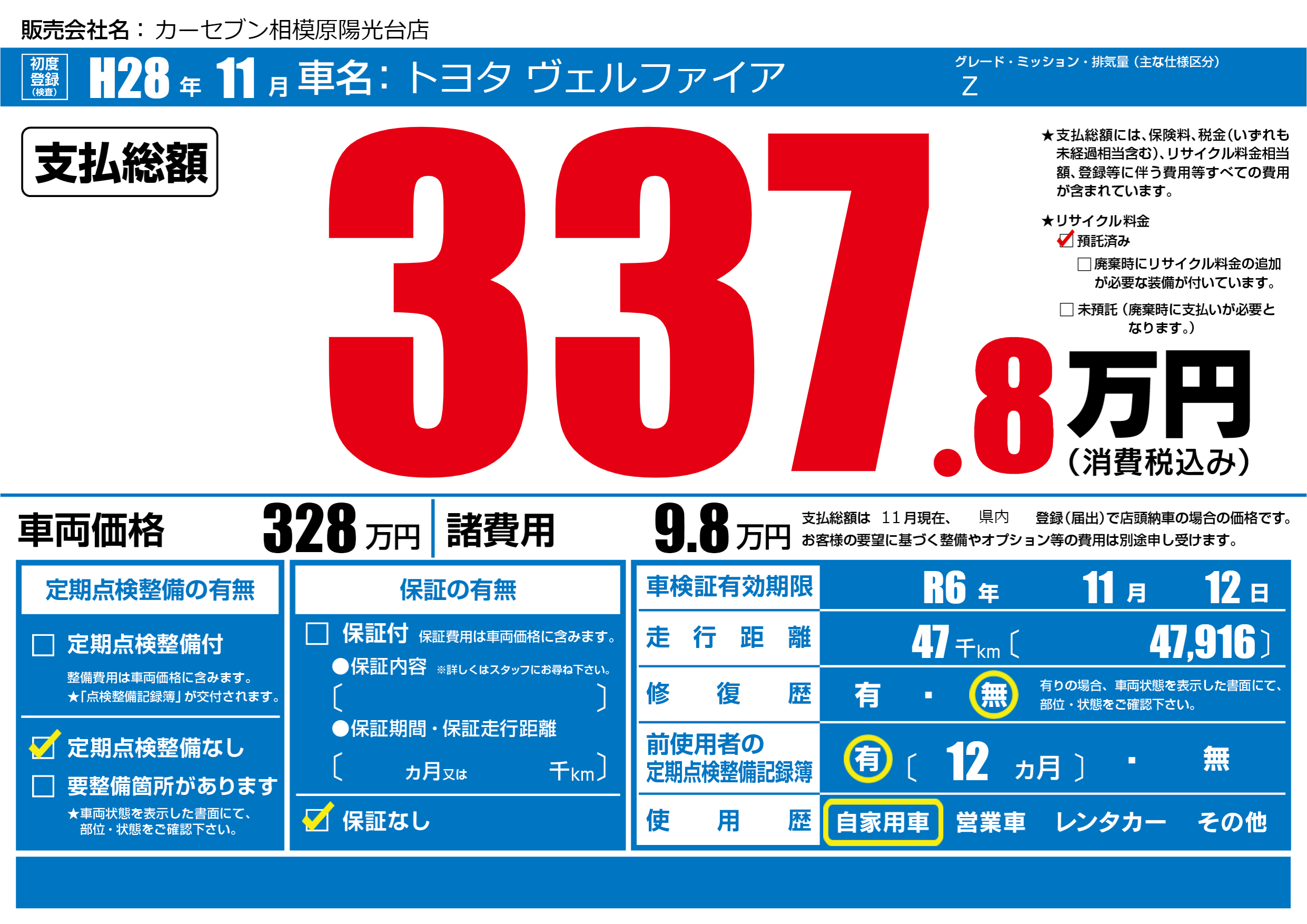 なし | 車検制限 | R6年11月12月 |