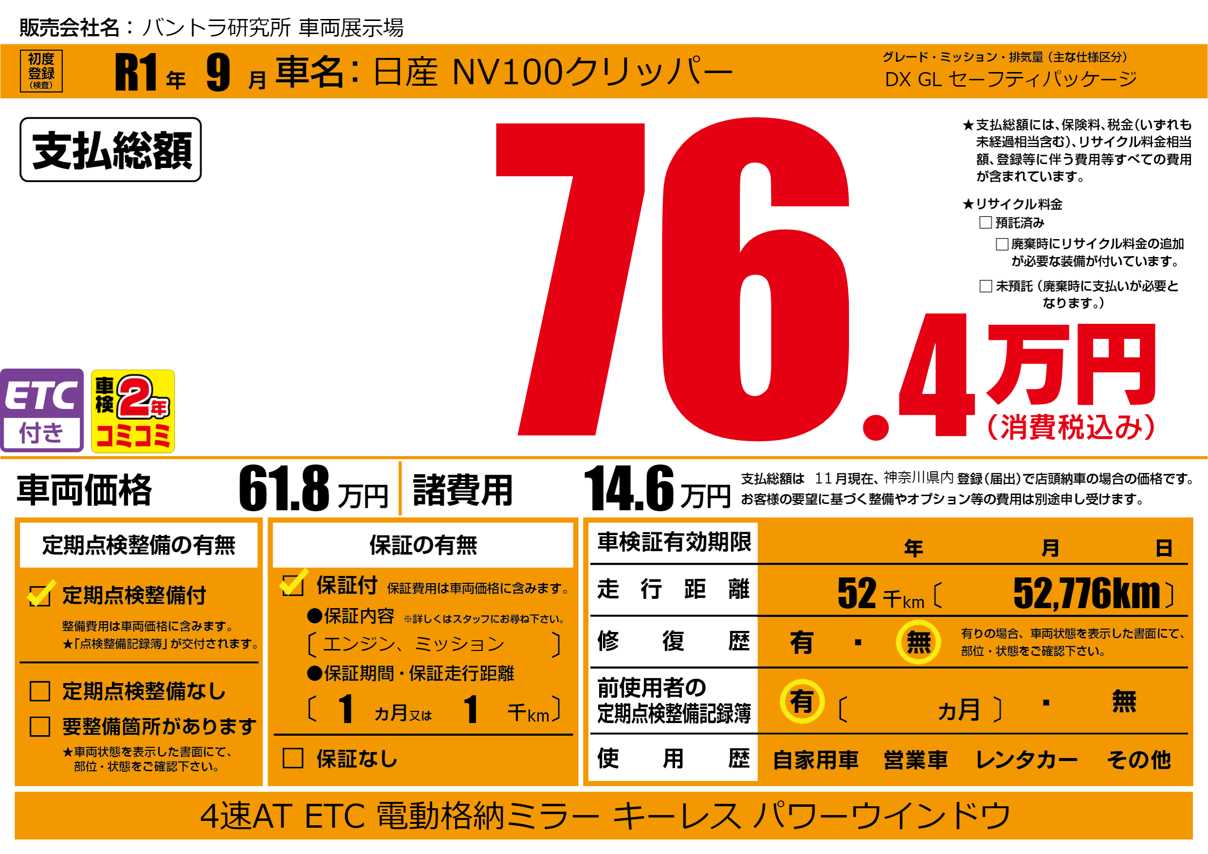 | 定期点検整備 | 定期点検整備あり | ||