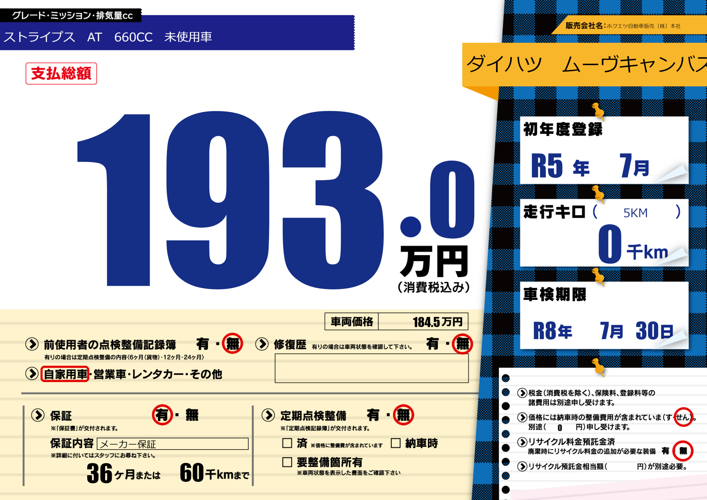 | 走行キロ | - | 初年度登録 | R5年7月 |