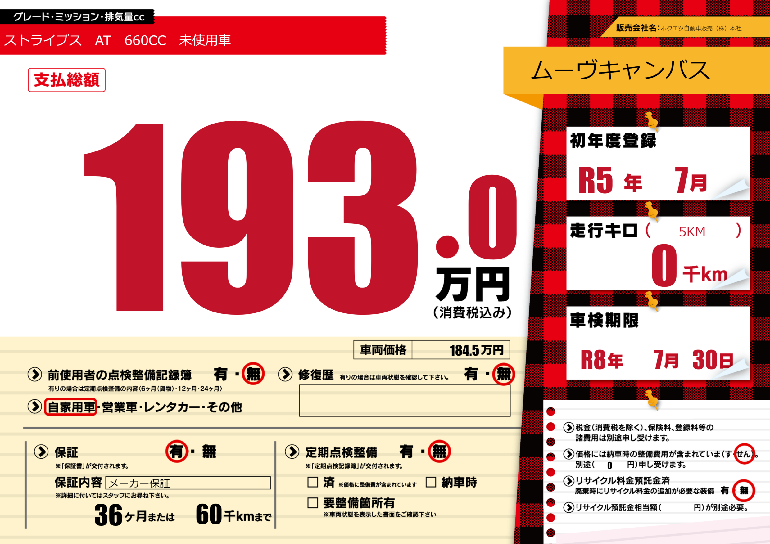 あり | 車検制限 | R8年7月30月 |