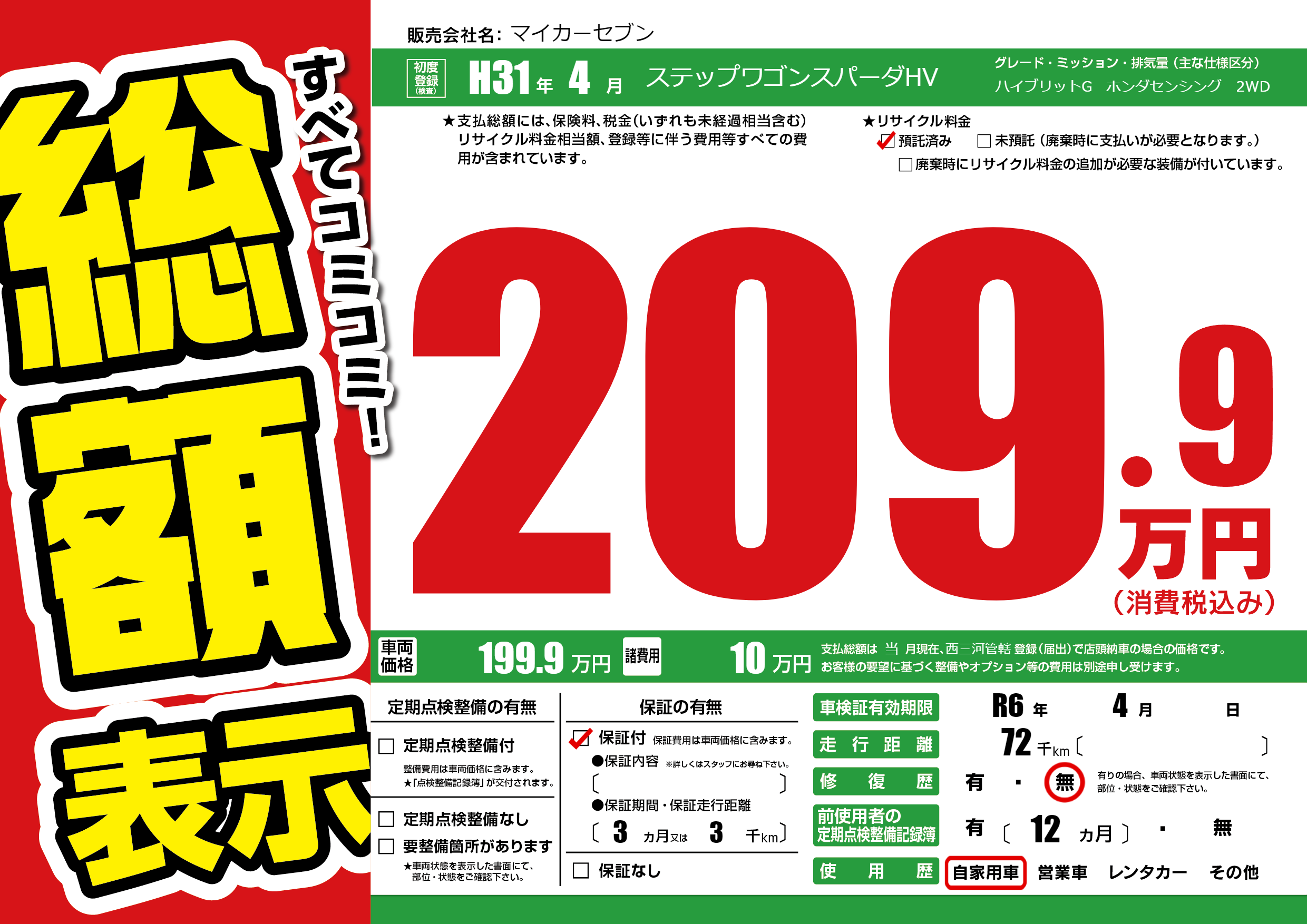 | 車検制限 | R6年 4月 - 日 | ||