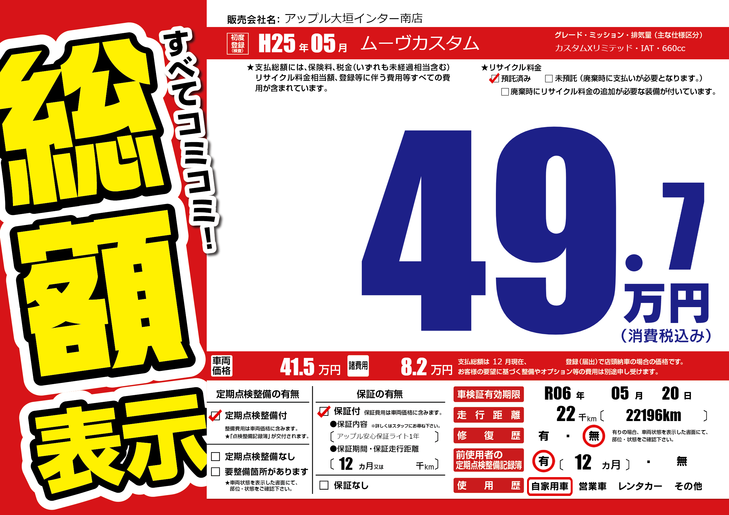 なし | 車検制限 | R06年05月20月 |