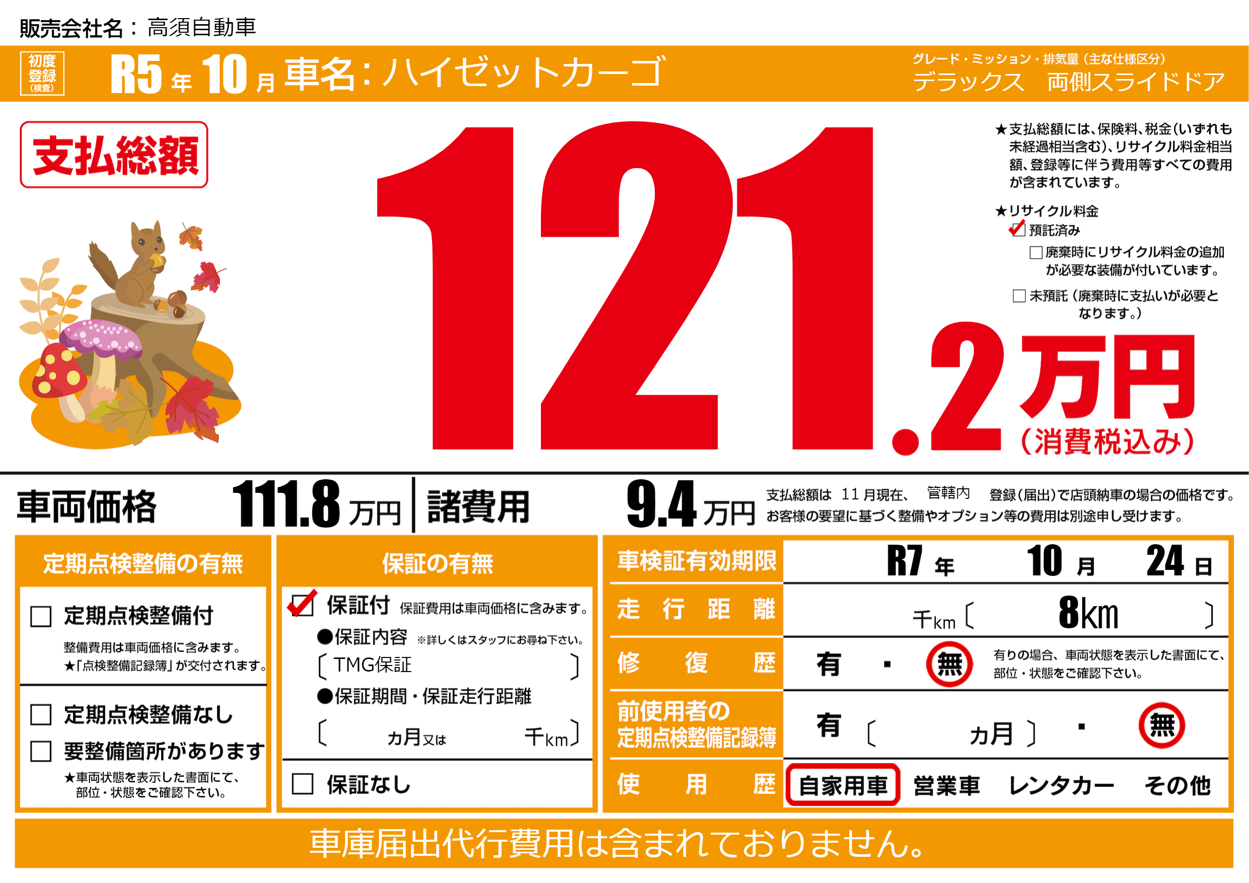 なし | 車検制限 | R7年10月24月 |