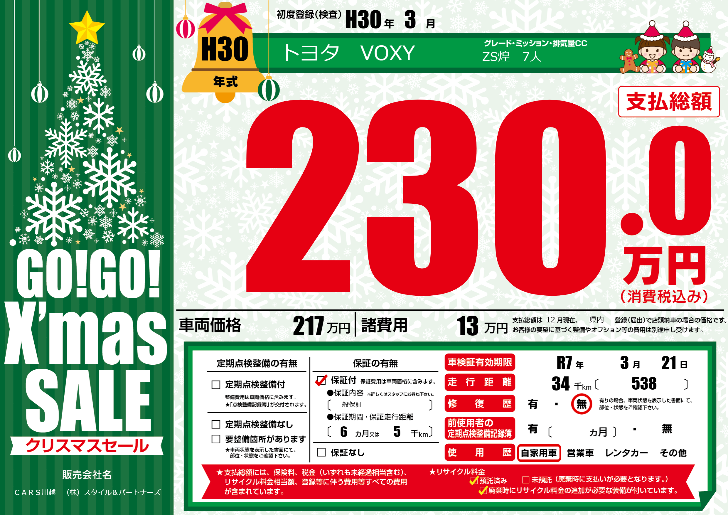 | 車名 | トヨタ VOXY | グレード ミッション 排気量 |