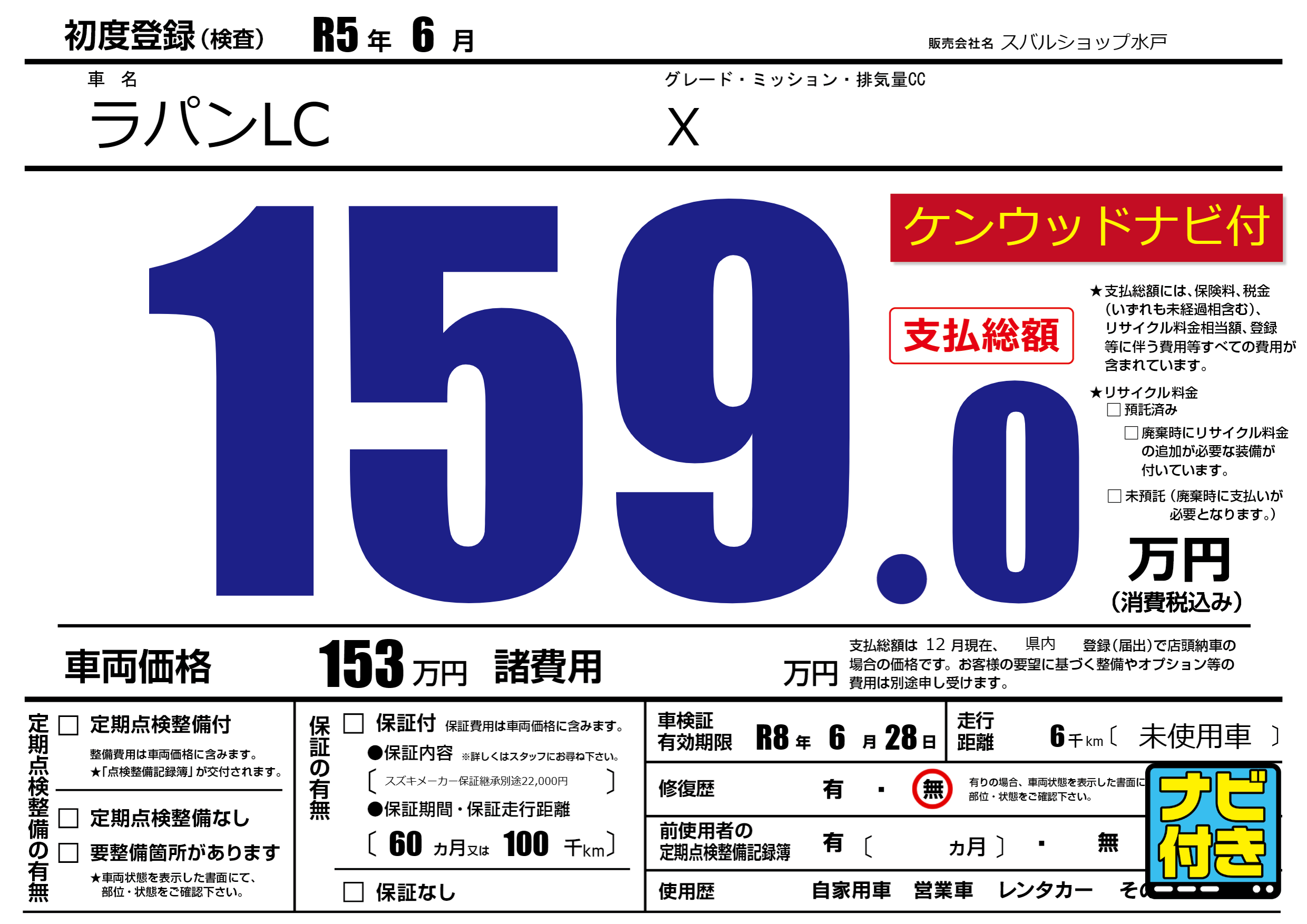 なし | 車検制限 | R8年6月28月 |