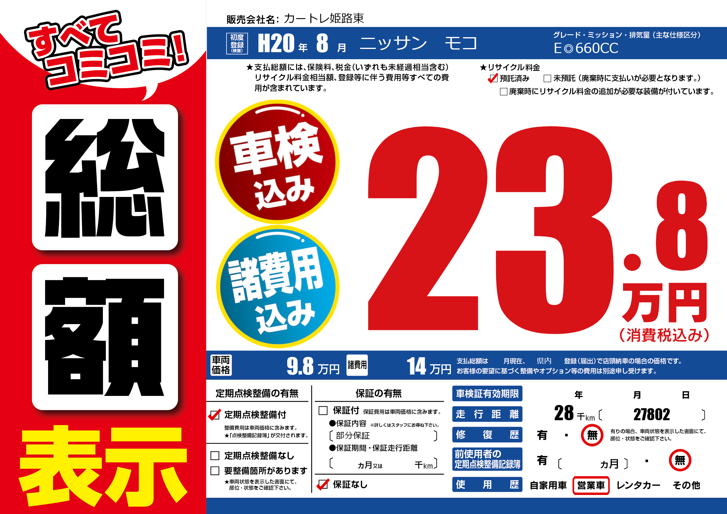 | メーカー | - | 種別 | 営業用 |