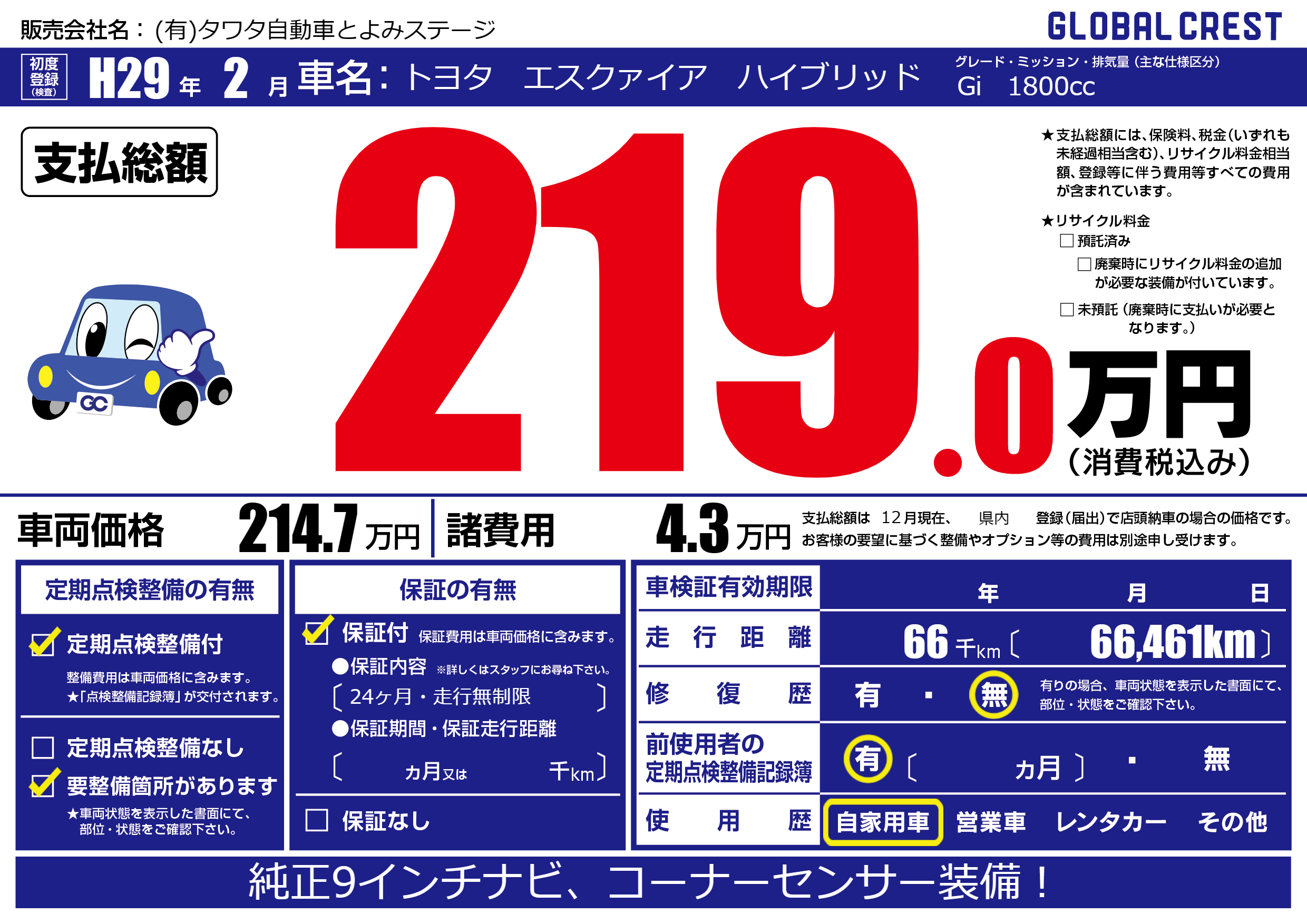 | 定期点検整備 | 定期点検整備あり 要整備箇所あり | ||