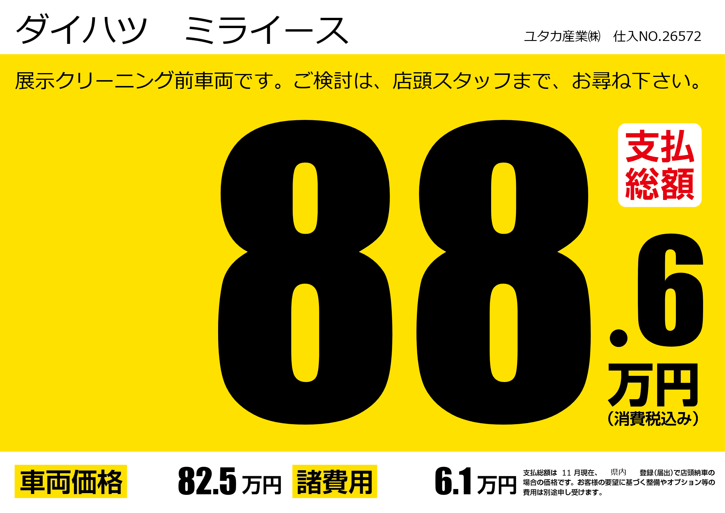 展示クリーニング前車両です。ご検討は、店頭スタッフまで、お尋ね下さい。 |