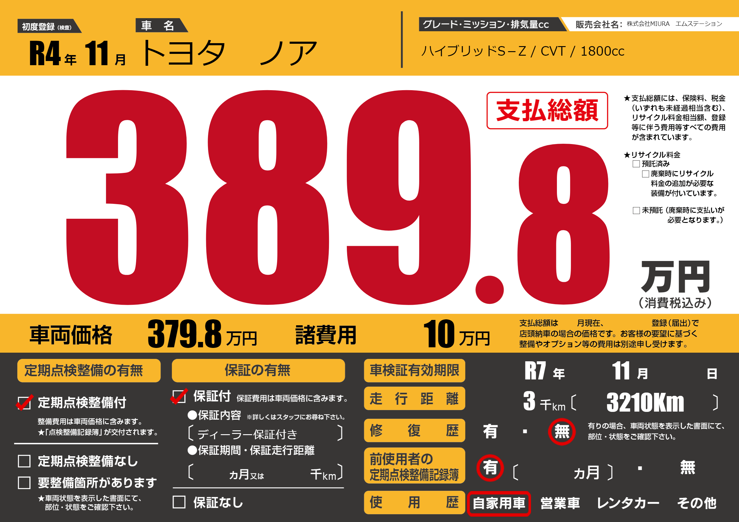 | 車検制限 | R7年 11月 - 日 | ||