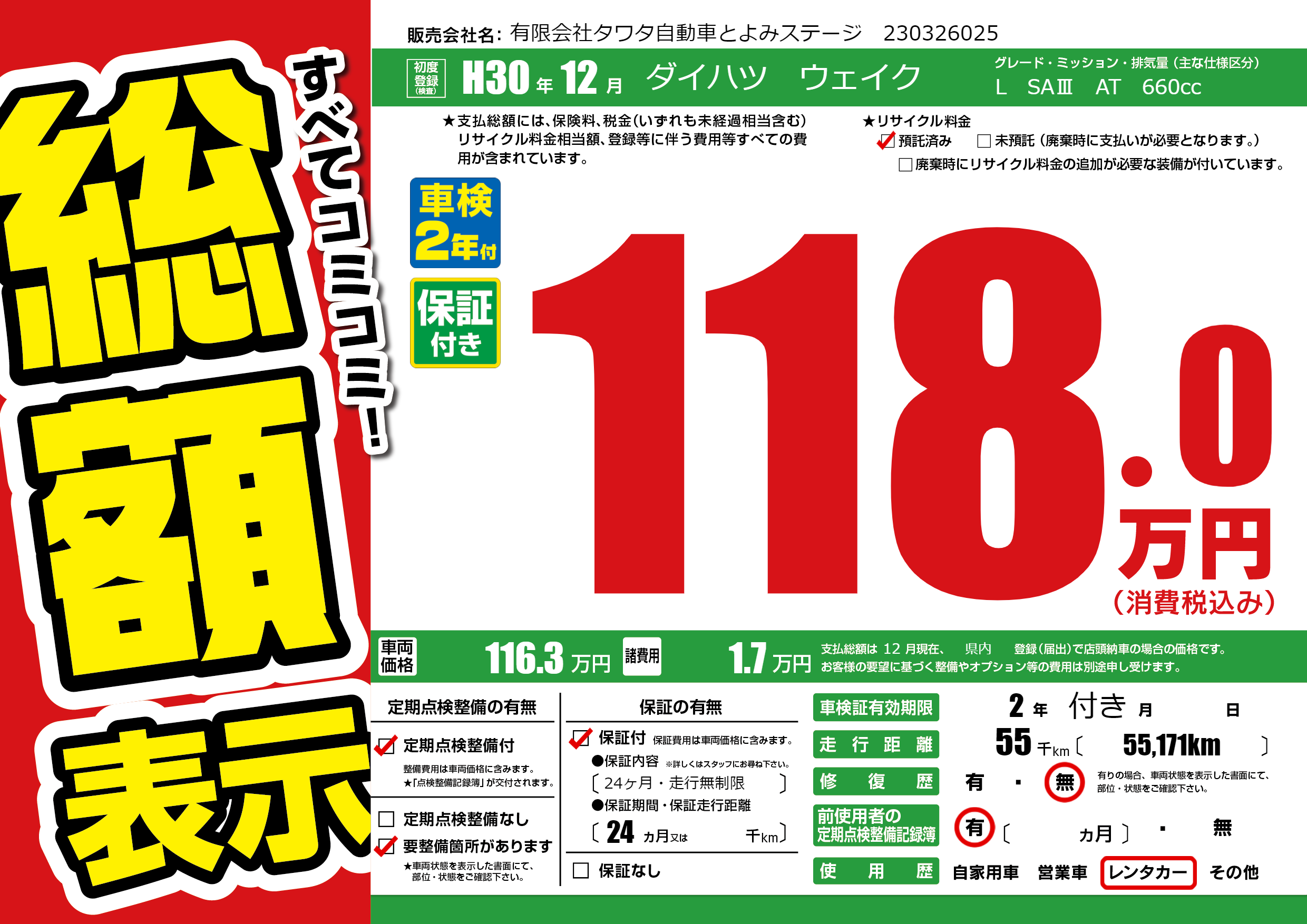 | 定期点検整備 | 定期点検整備あり 要整備箇所あり | ||