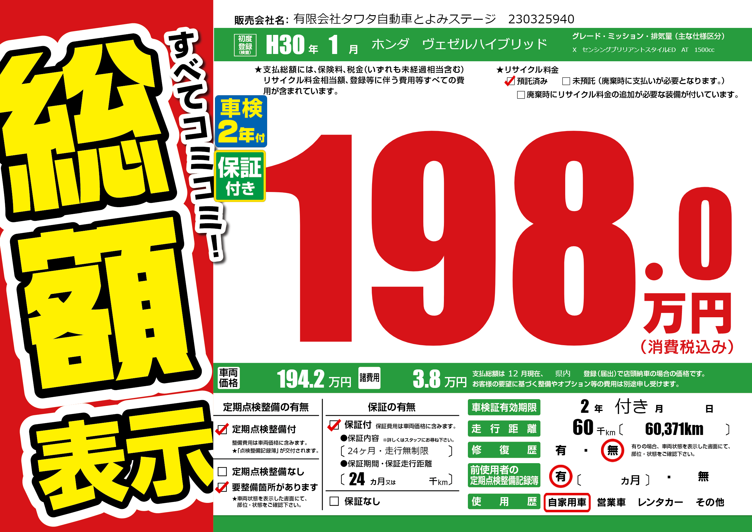 なし | 車検制限 | 2年付き月---月 |