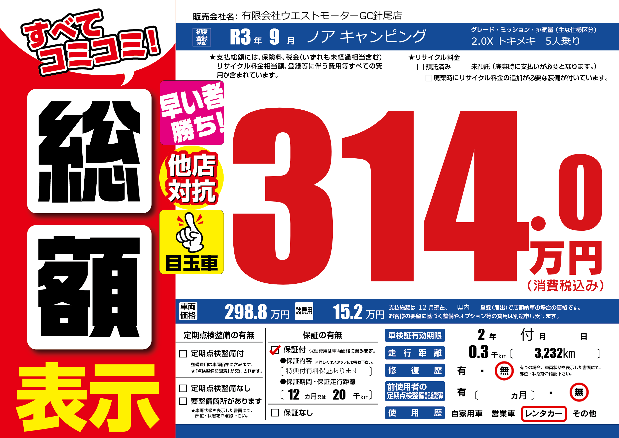 保証付き 保証内容(特典付有料保証あります) 12ヶ月または(20)千kmまで |