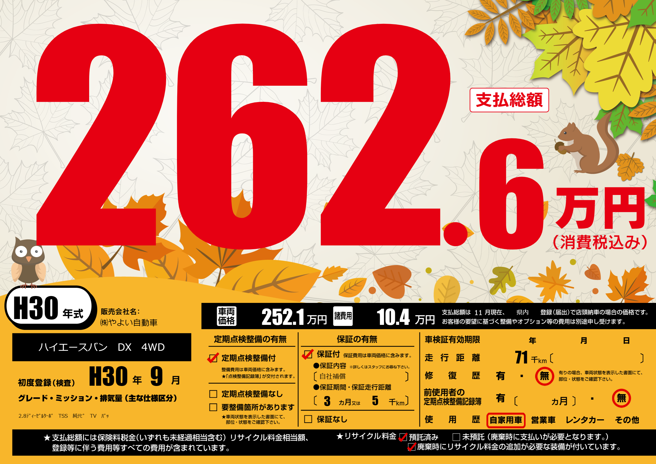 | 走行キロ | 7.1万km | 初年度登録 | H30年9月 |
