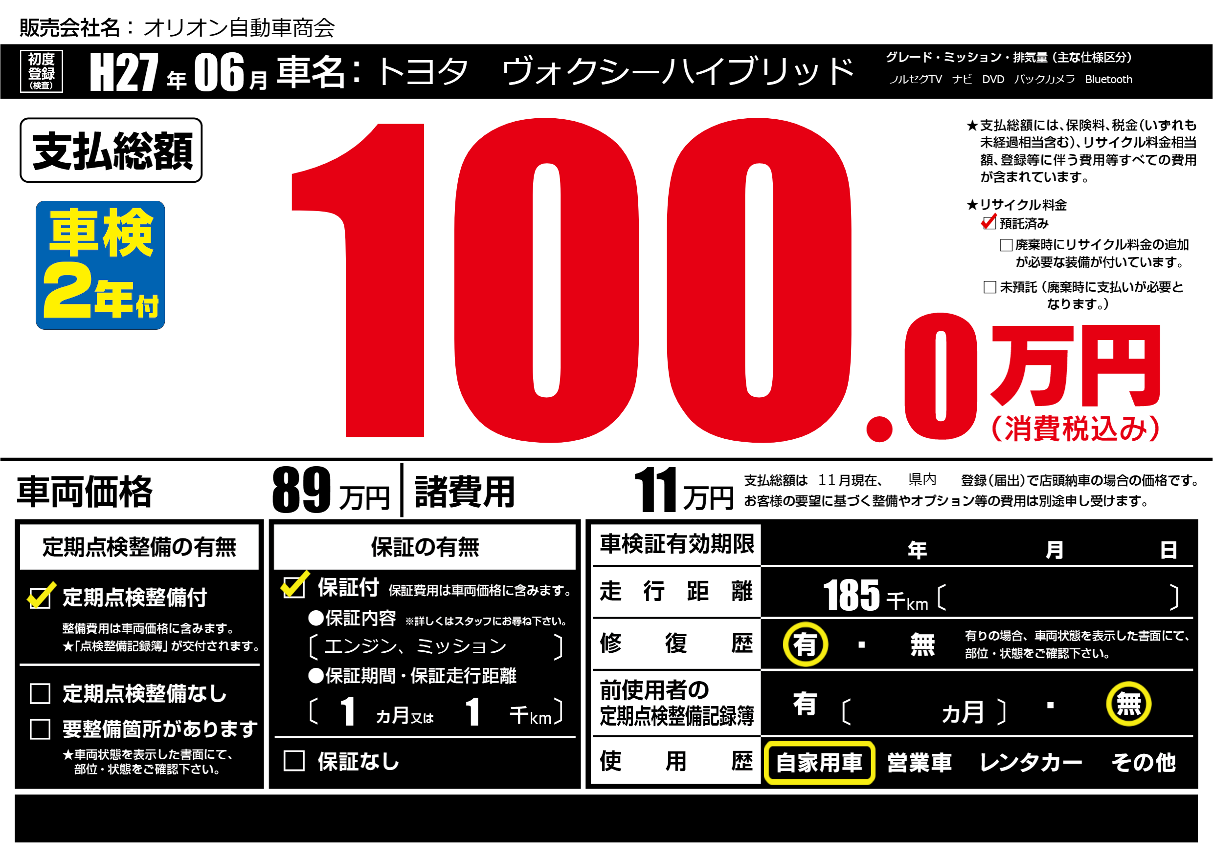 | 定期点検整備 | 定期点検整備あり | ||