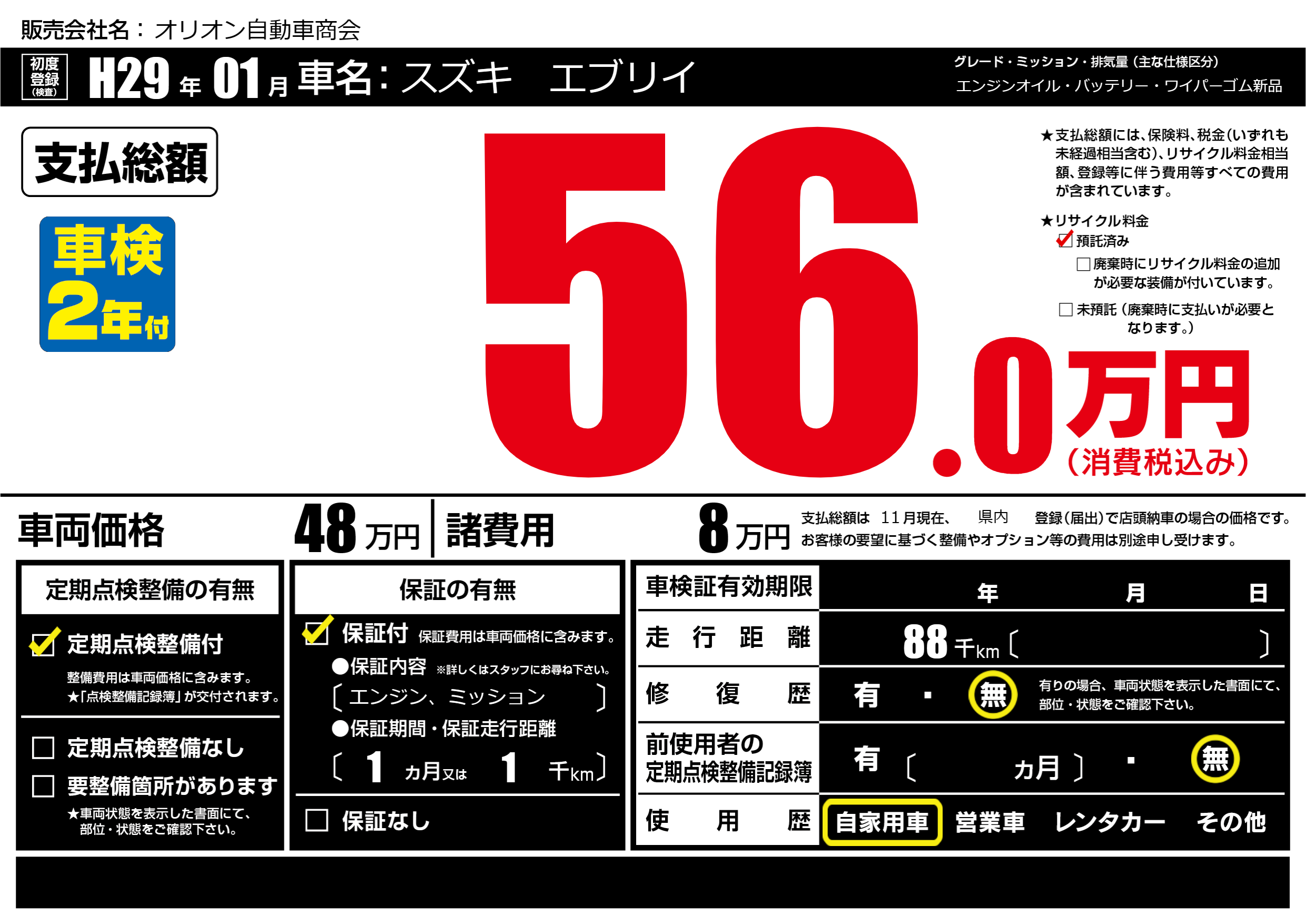 | 走行キロ | 8.8万km | 初年度登録 | H29年01月 |