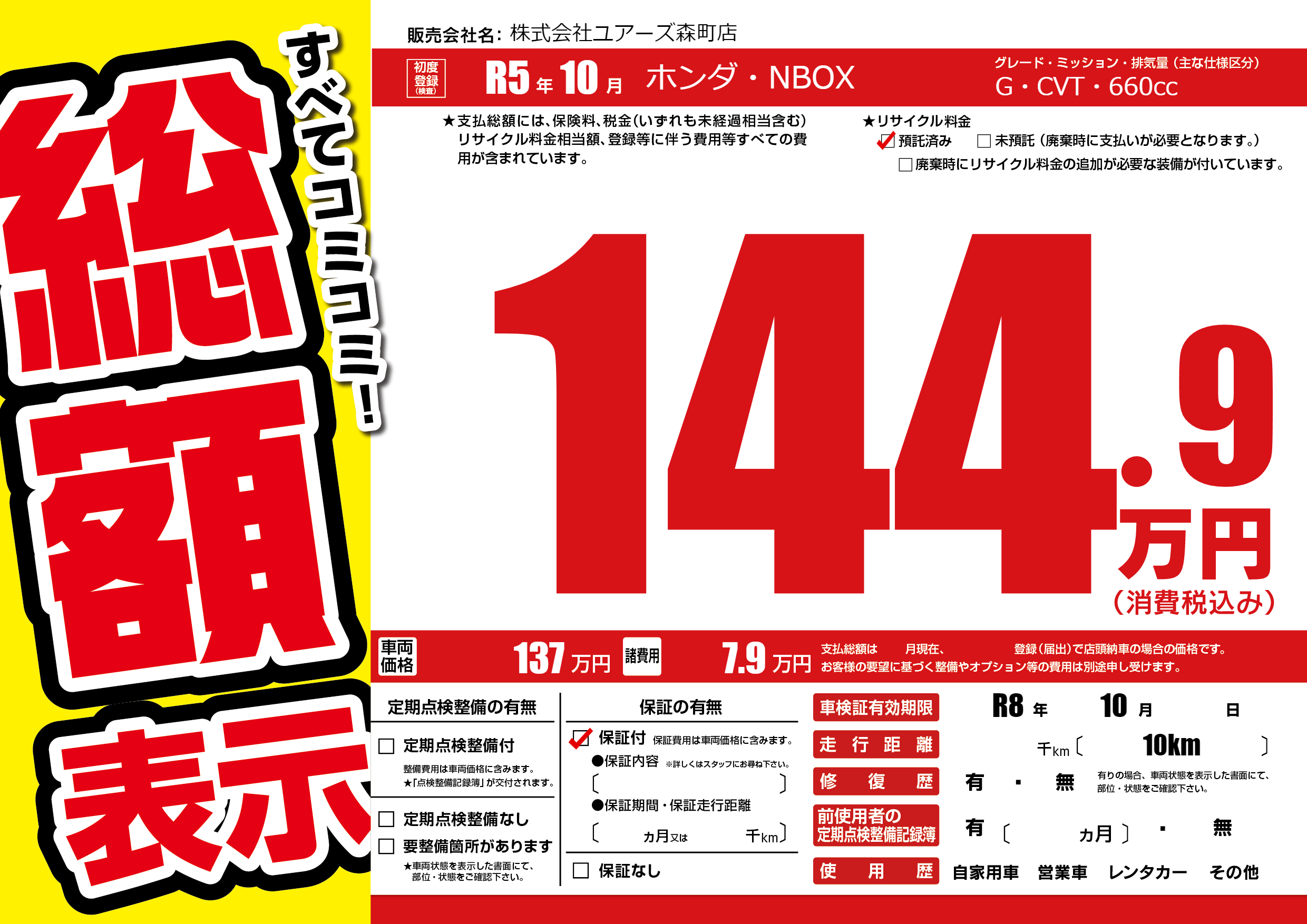 なし | 車検制限 | R8年10月---月 |