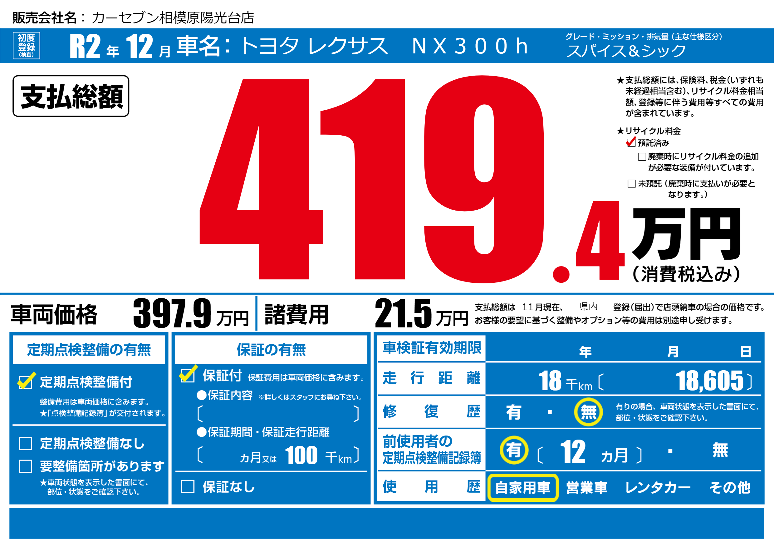 | 定期点検整備 | 定期点検整備あり | ||
