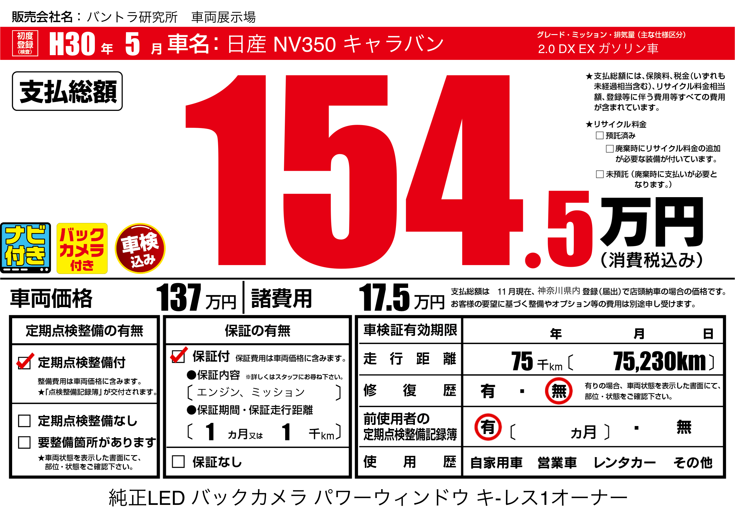 | 走行キロ | 7.5万km | ||