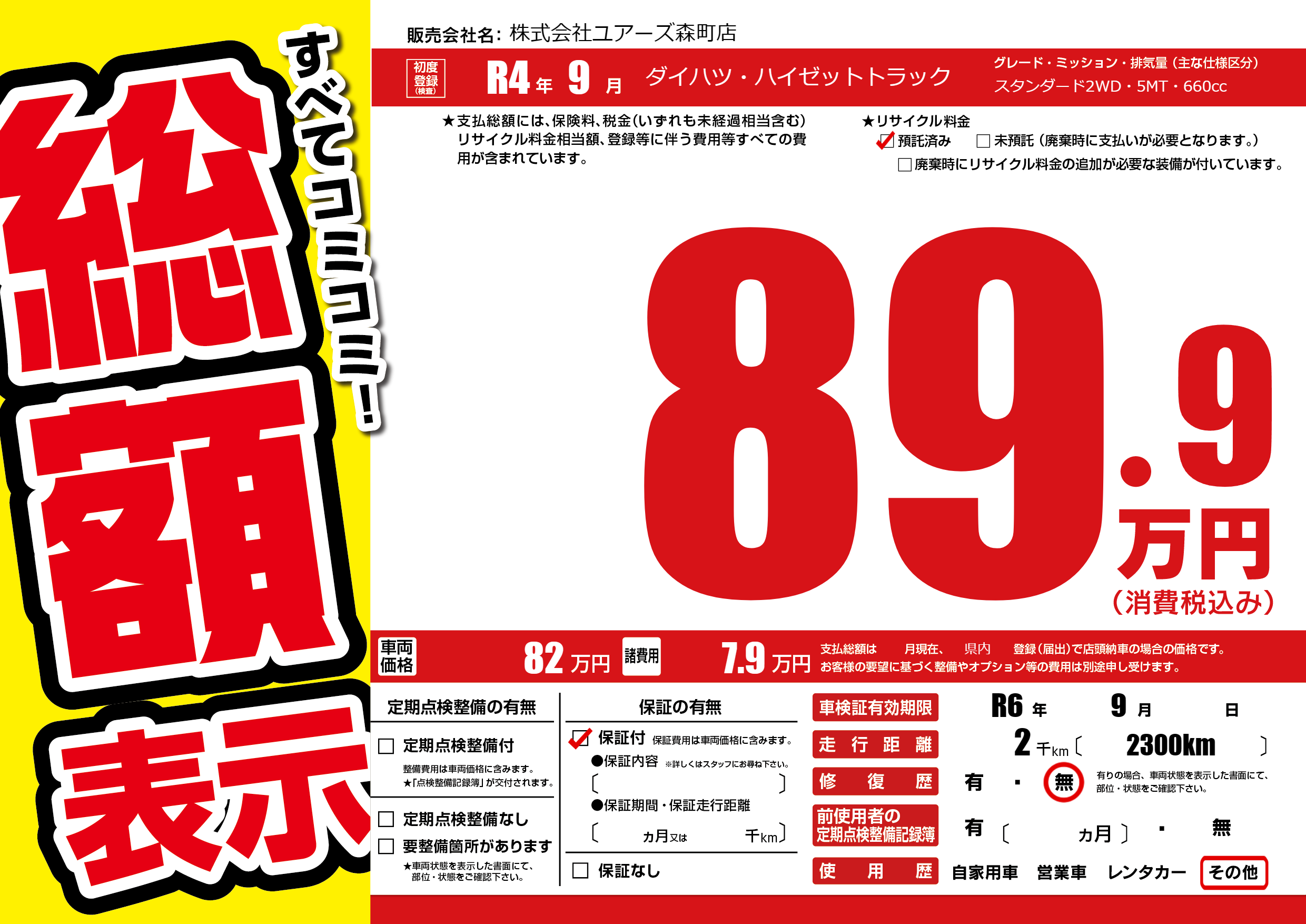 なし | 車検制限 | R6年9月---月 |