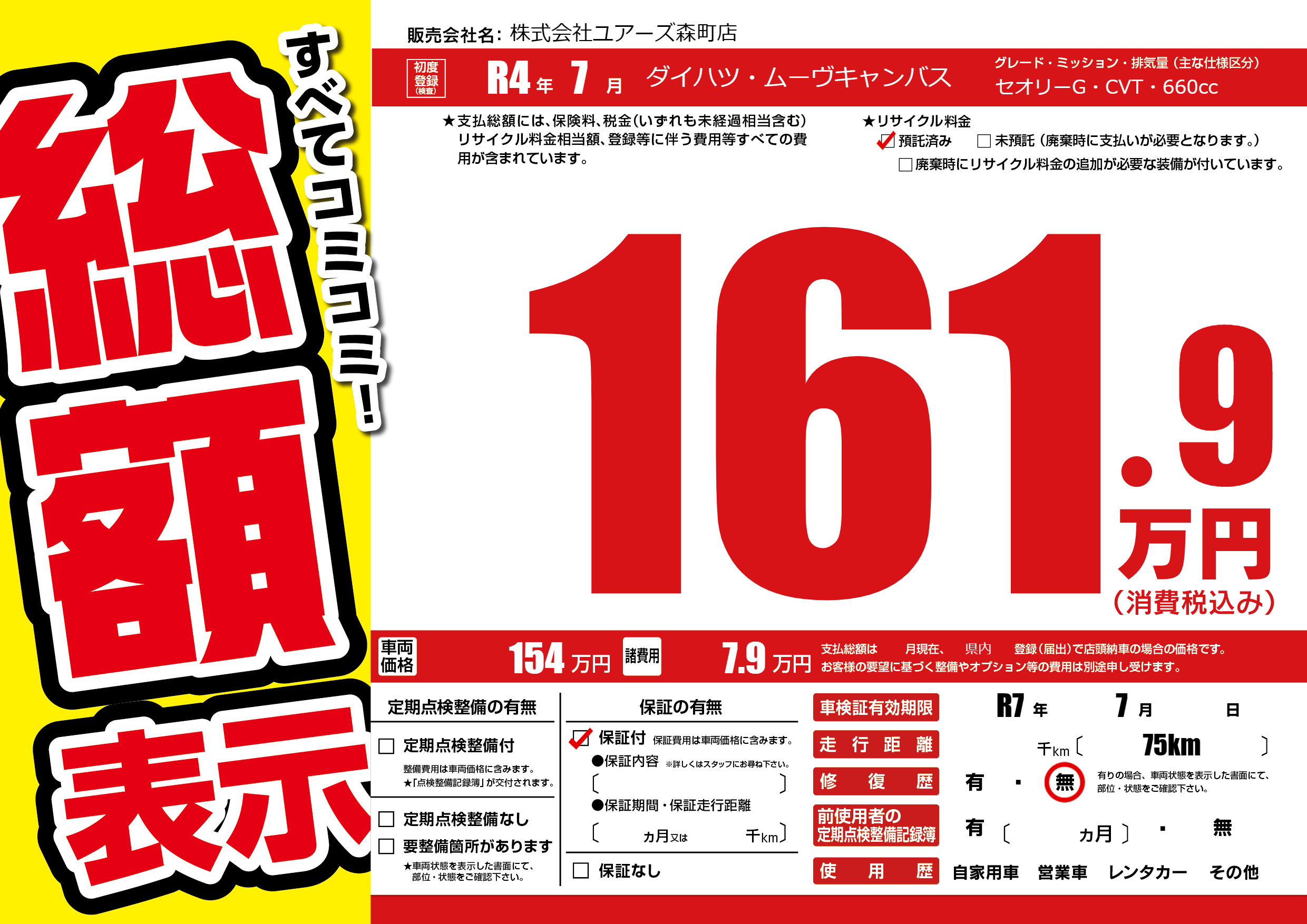 なし | 車検制限 | R7年7月---月 |