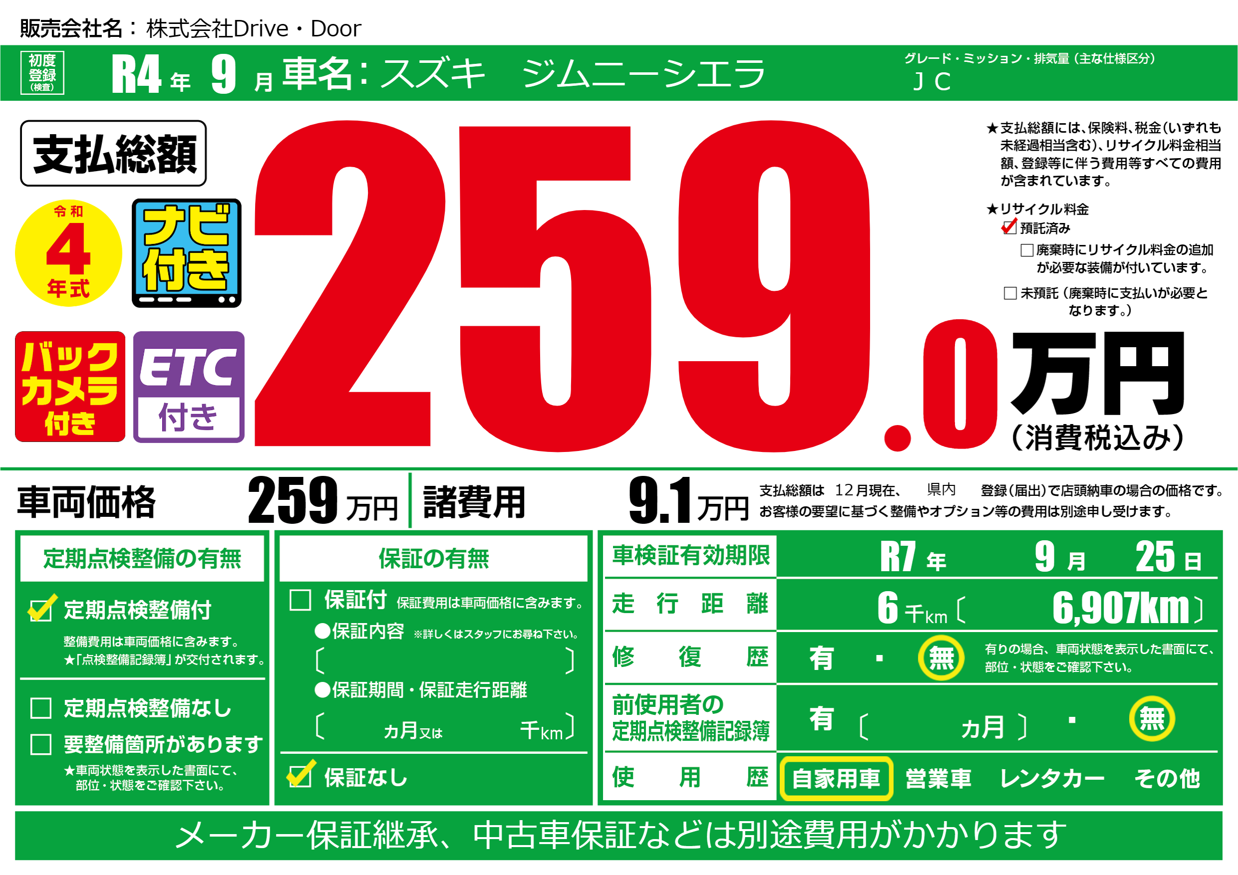 | 走行キロ | 0.6万km | 初年度登録 | R4年9月 |