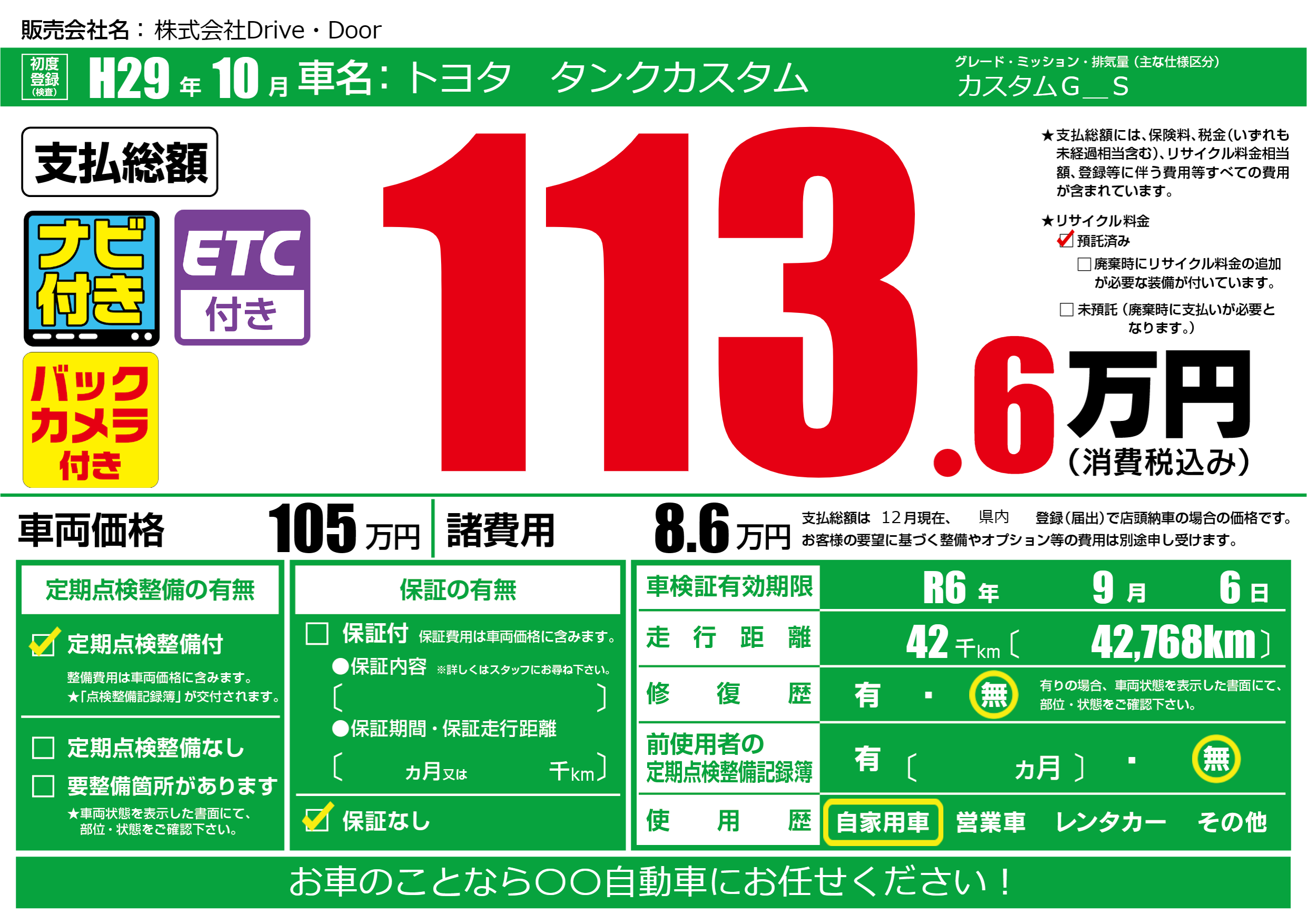 | 走行キロ | 4.2万km | 初年度登録 | H29年10月 |