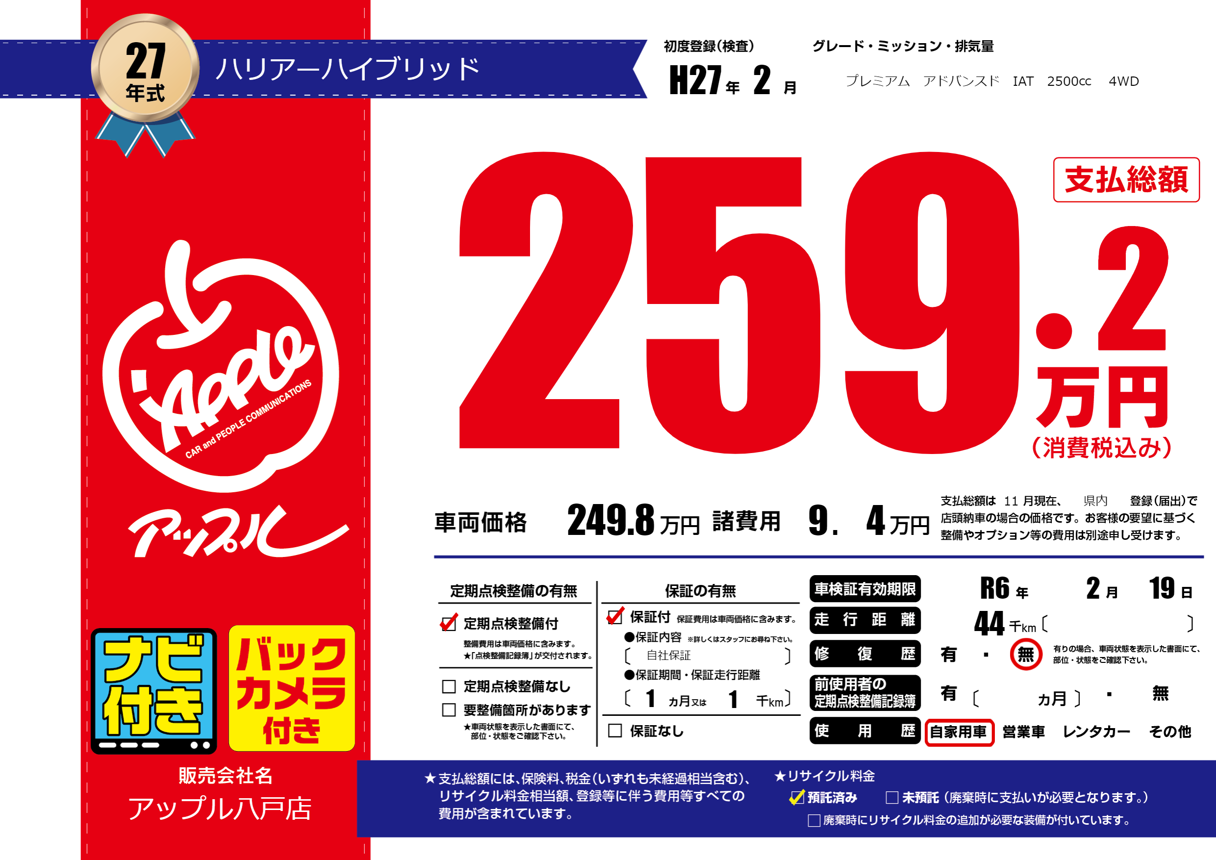 | 車検制限 | R6年 2月 19日 | ||