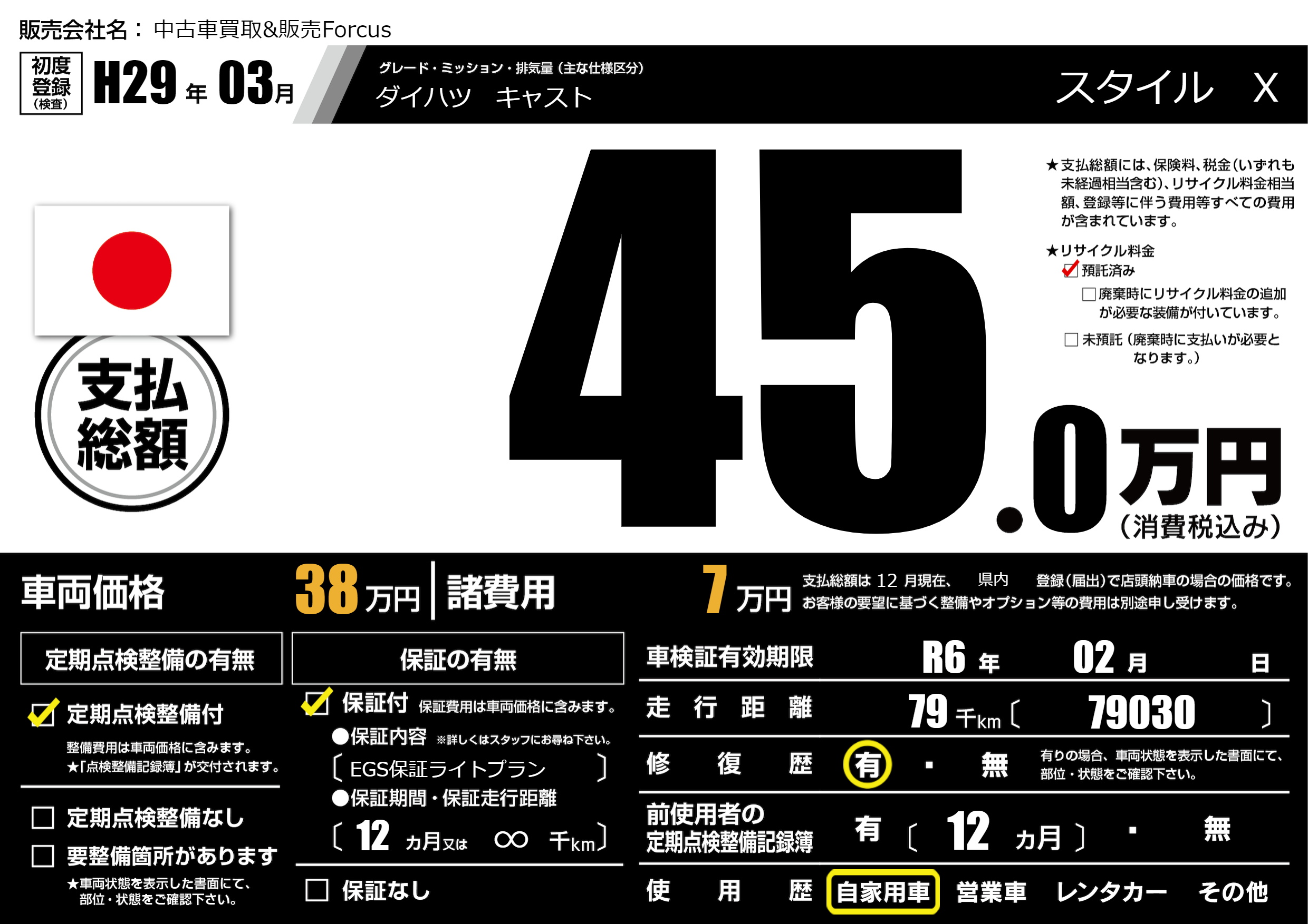 | 走行キロ | 7.9万km | 初年度登録 | H29年03月 |