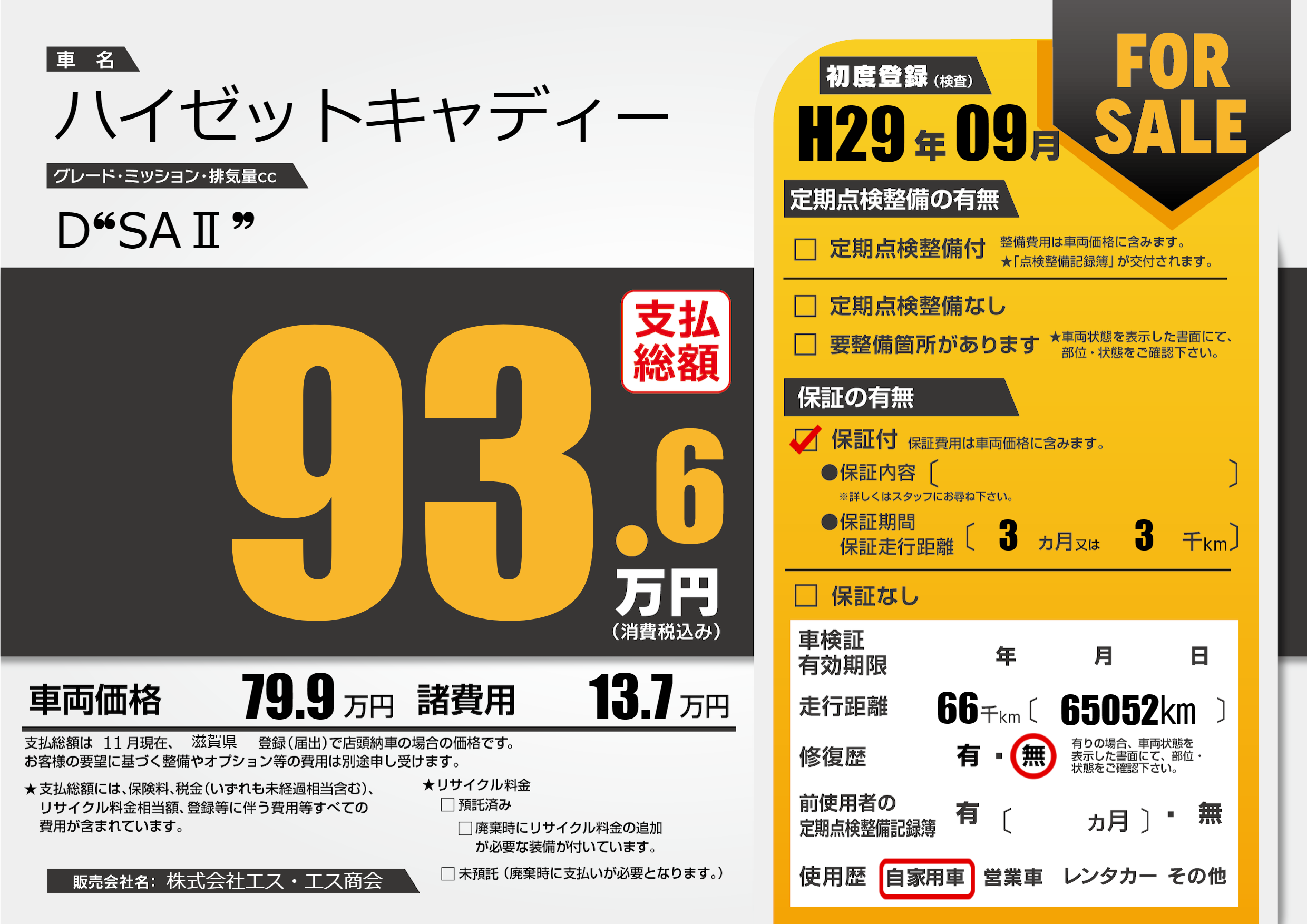 | 走行キロ | 6.6万km | 初年度登録 | H29年09月 |