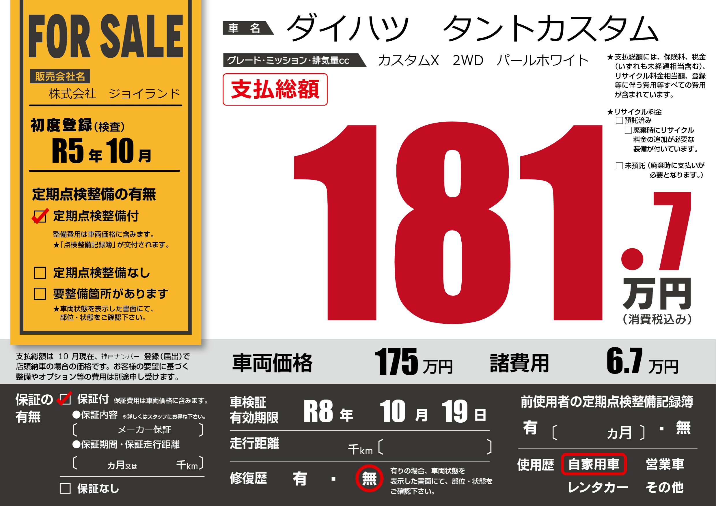 | 走行キロ | - | 初年度登録 | R5年10月 |