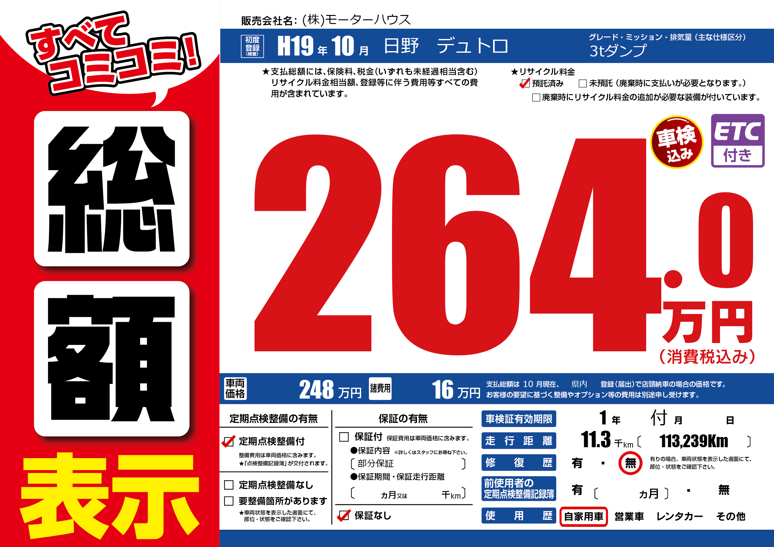 保証なし 保証内容(部分保証) ---ヶ月または()千kmまで |