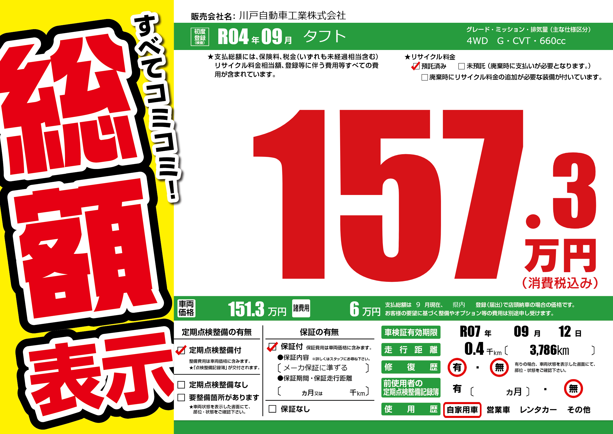 | 走行キロ | - | 初年度登録 | R04年09月 |