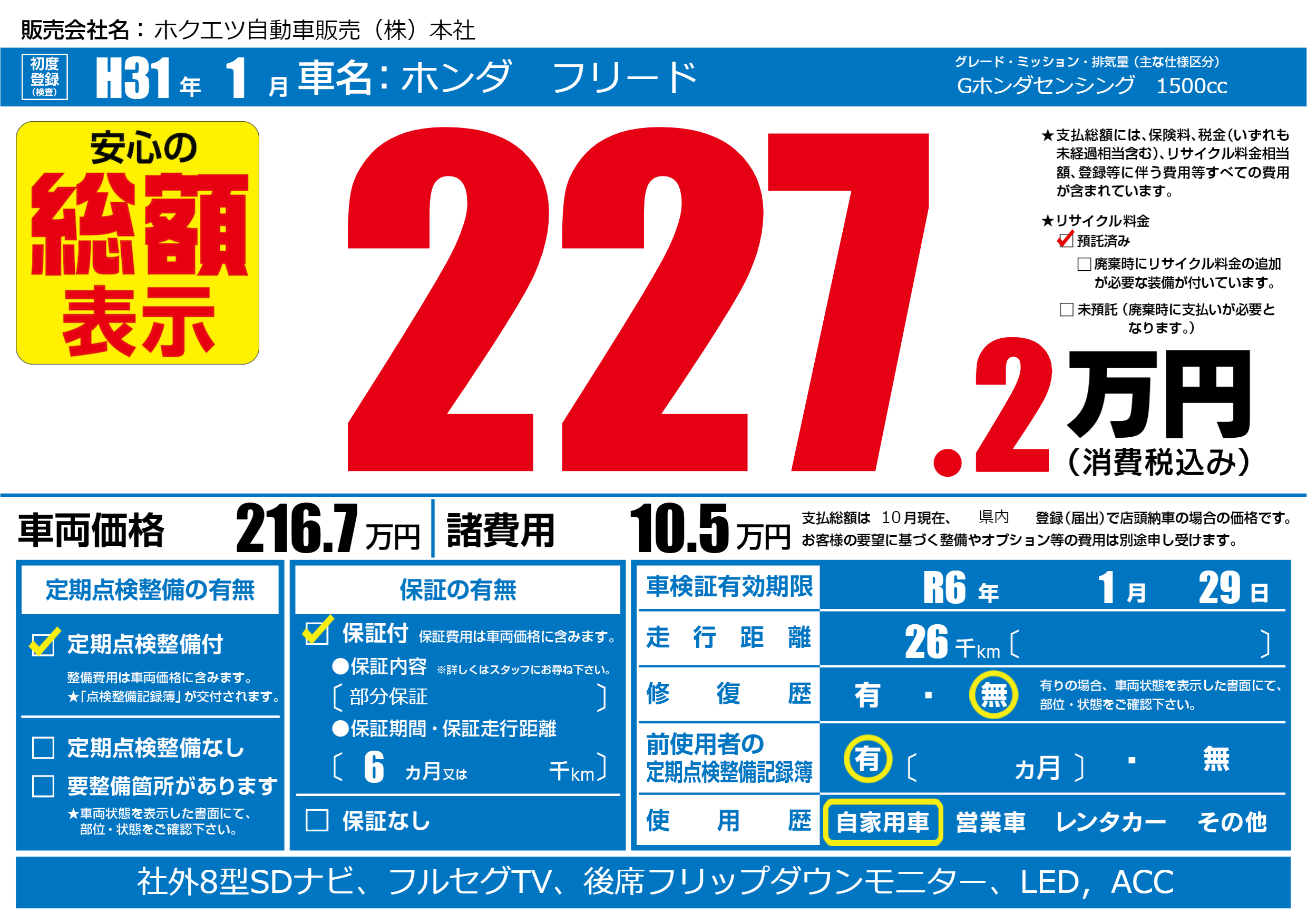なし | 車検制限 | R6年1月29月 |