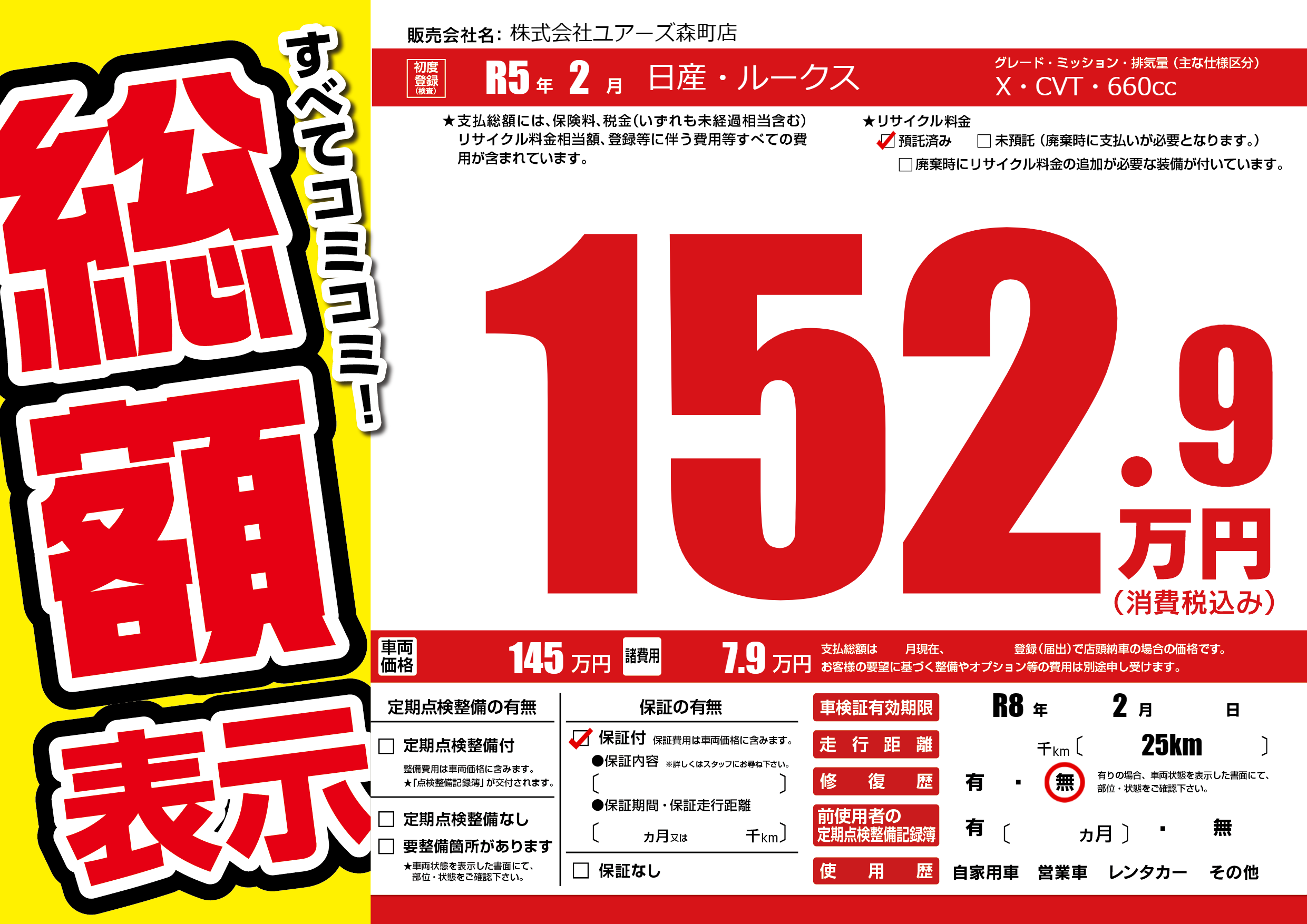 | 車検制限 | R8年 2月 - 日 | ||