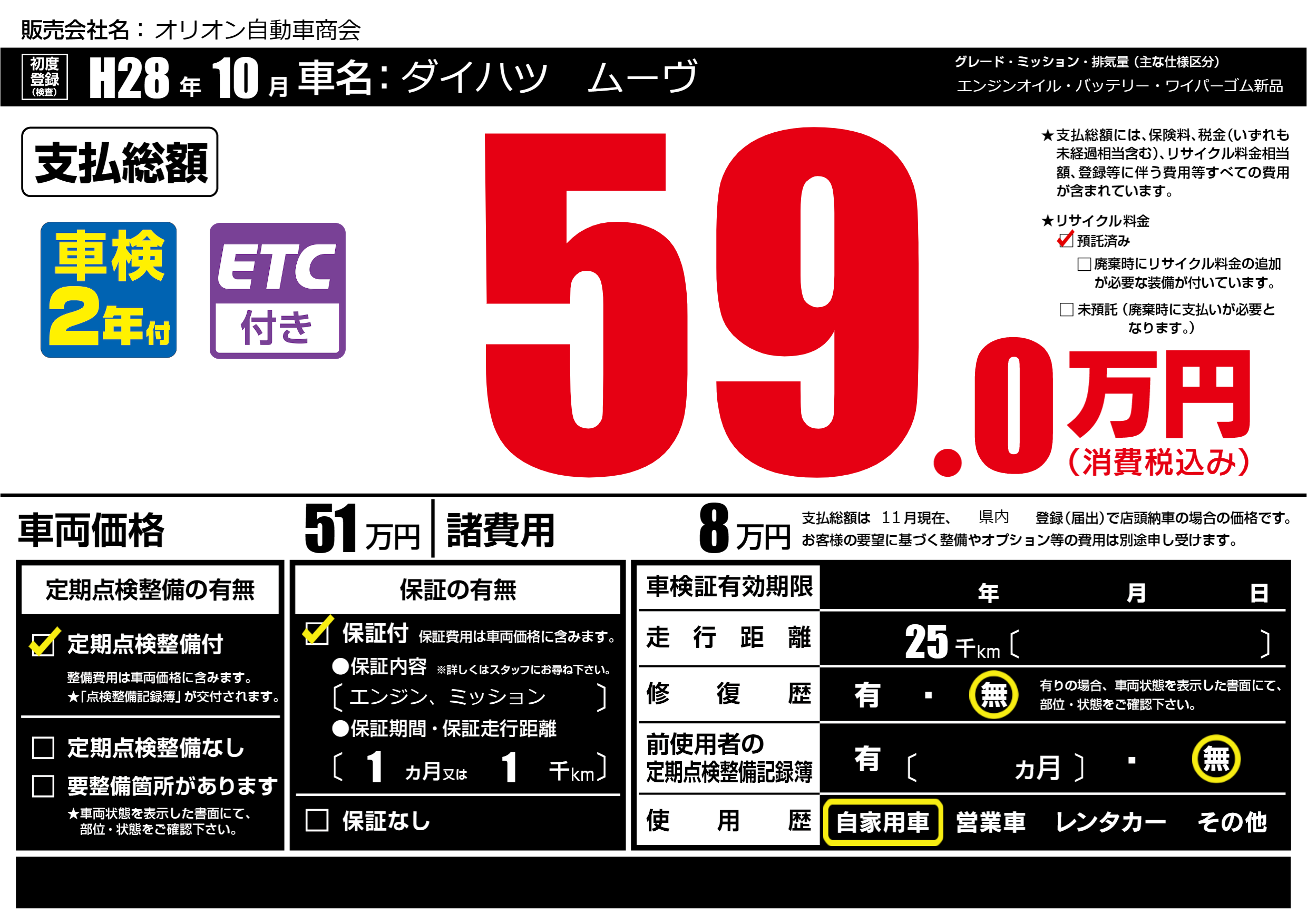 | 車名 | ダイハツ ムーヴ | グレード ミッション 排気量 |