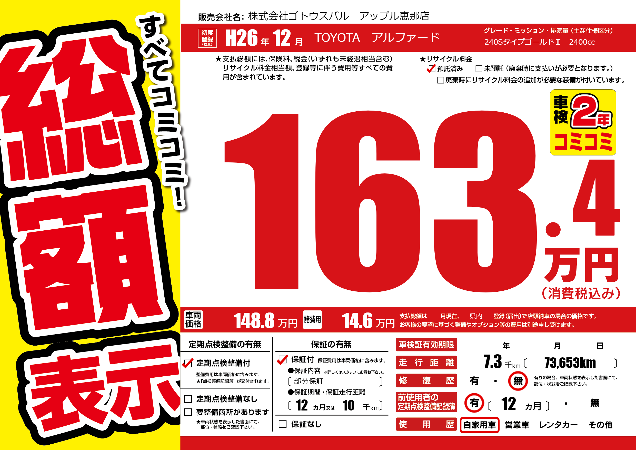 保証付き 保証内容(部分保証) 12ヶ月または(10)千kmまで |