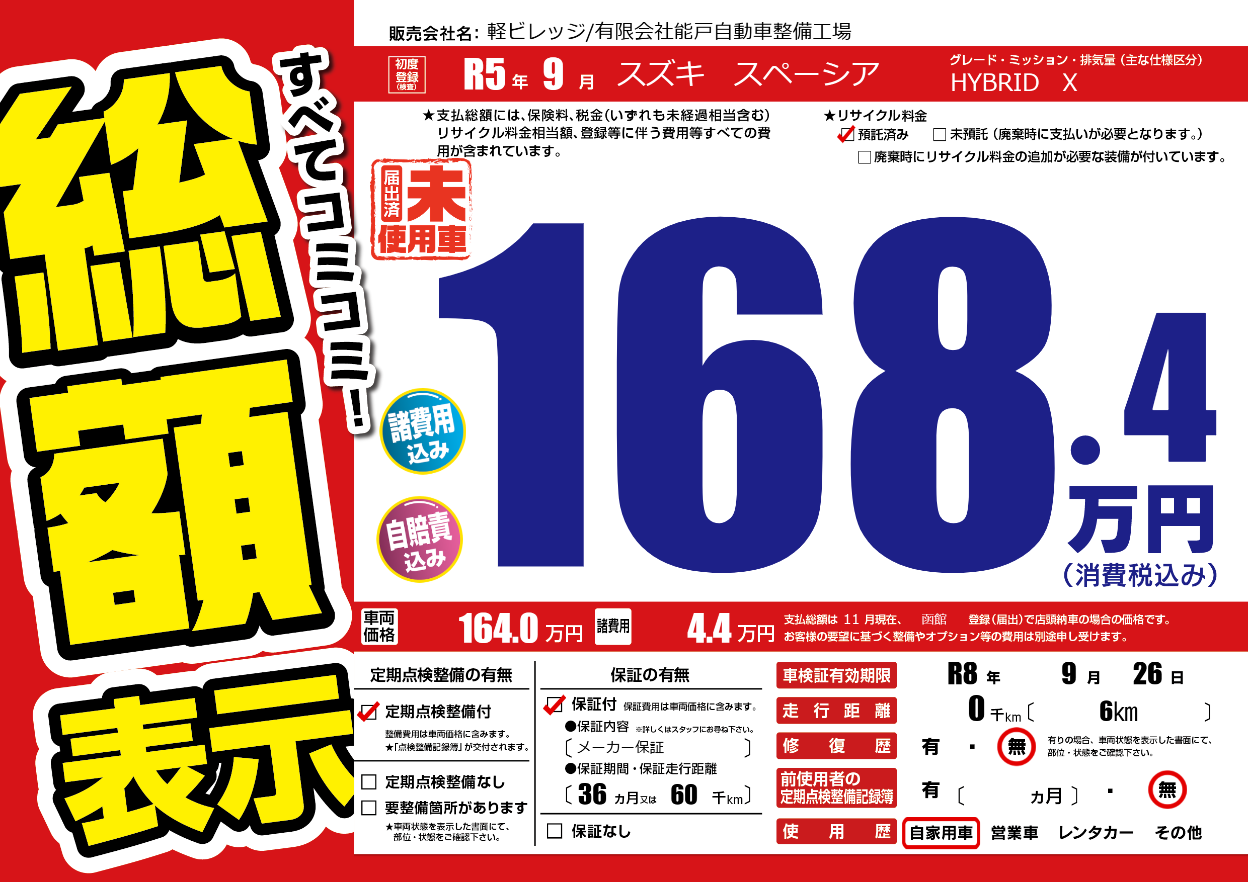 | 走行キロ | - | 初年度登録 | R5年9月 |