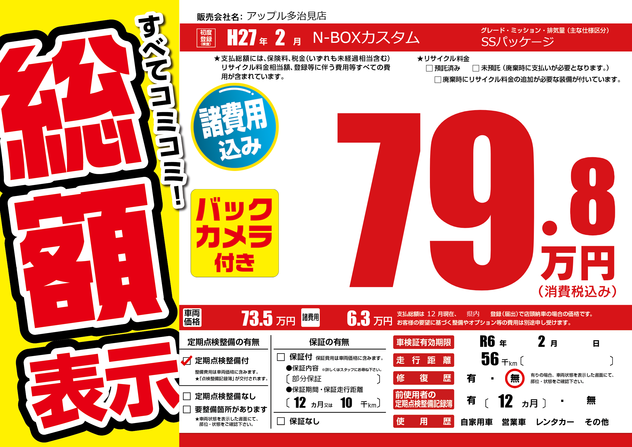 | 車名 | N-BOXカスタム | グレード ミッション 排気量 |