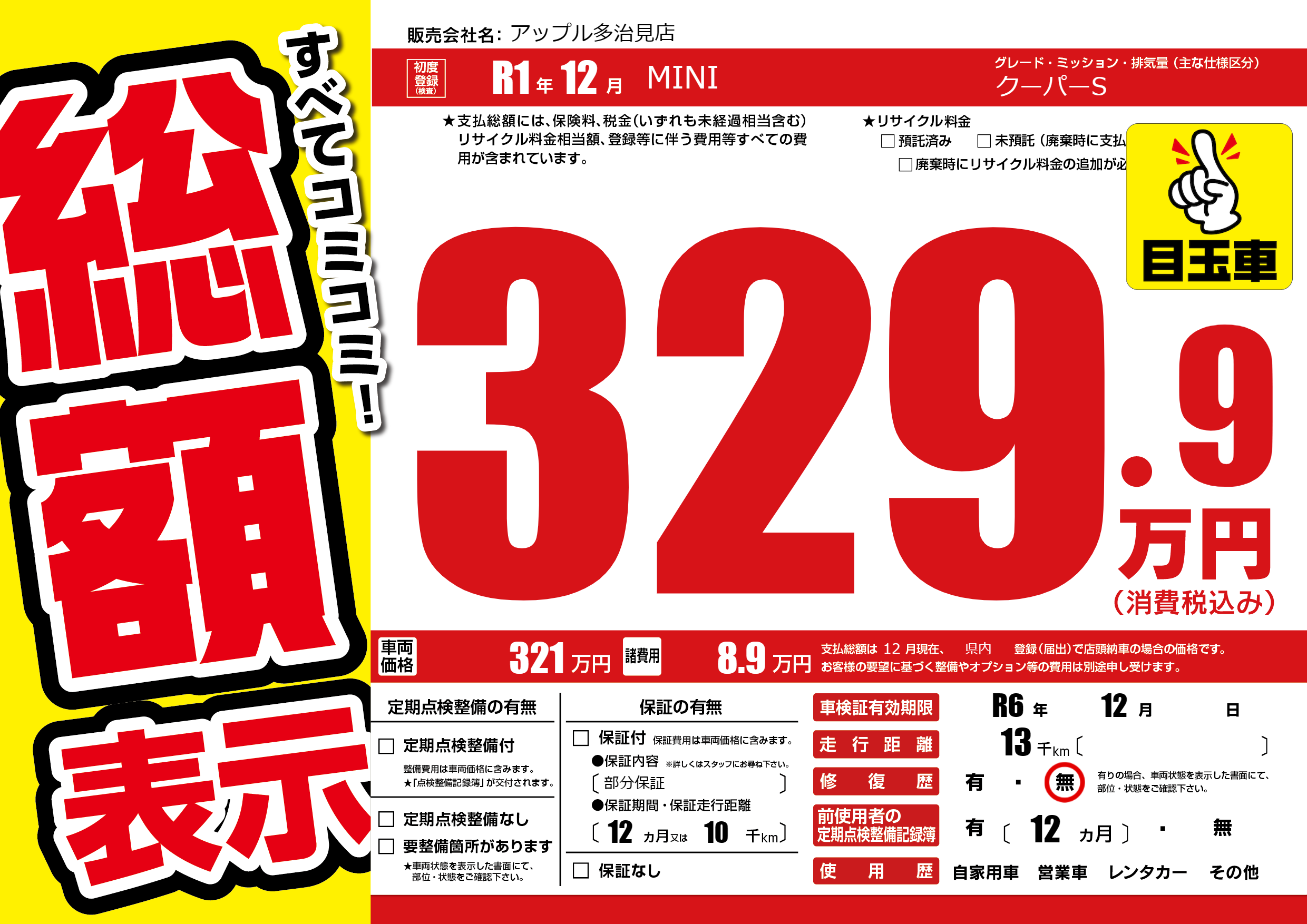 なし | 車検制限 | R6年12月---月 |
