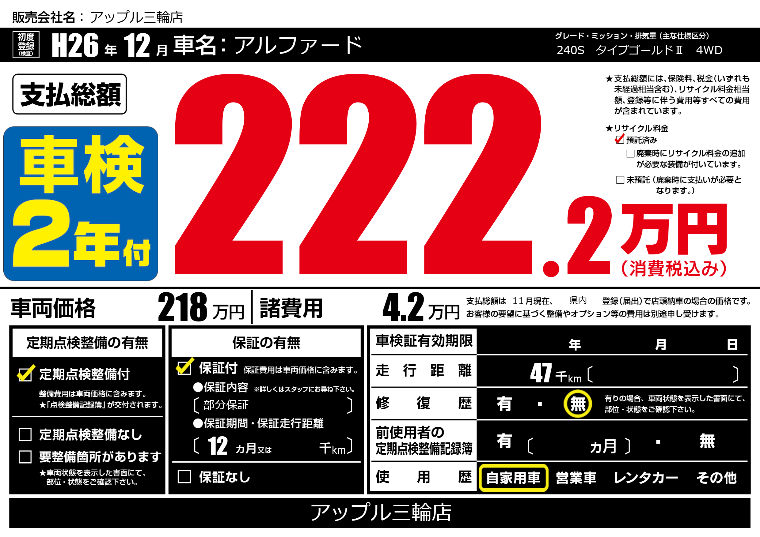 | 走行キロ | 4.7万km | ||